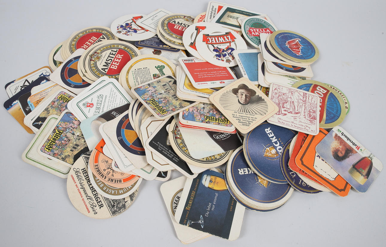 COASTERS, approx. 135 pcs, mostly beers, breweriana, carton.