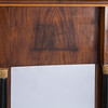 Veneered in mahogany, blackened columns, brass details, approx. 173 x 85 cm.