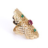 18CT GOLD RUBY & GREEN STONE SET RING.