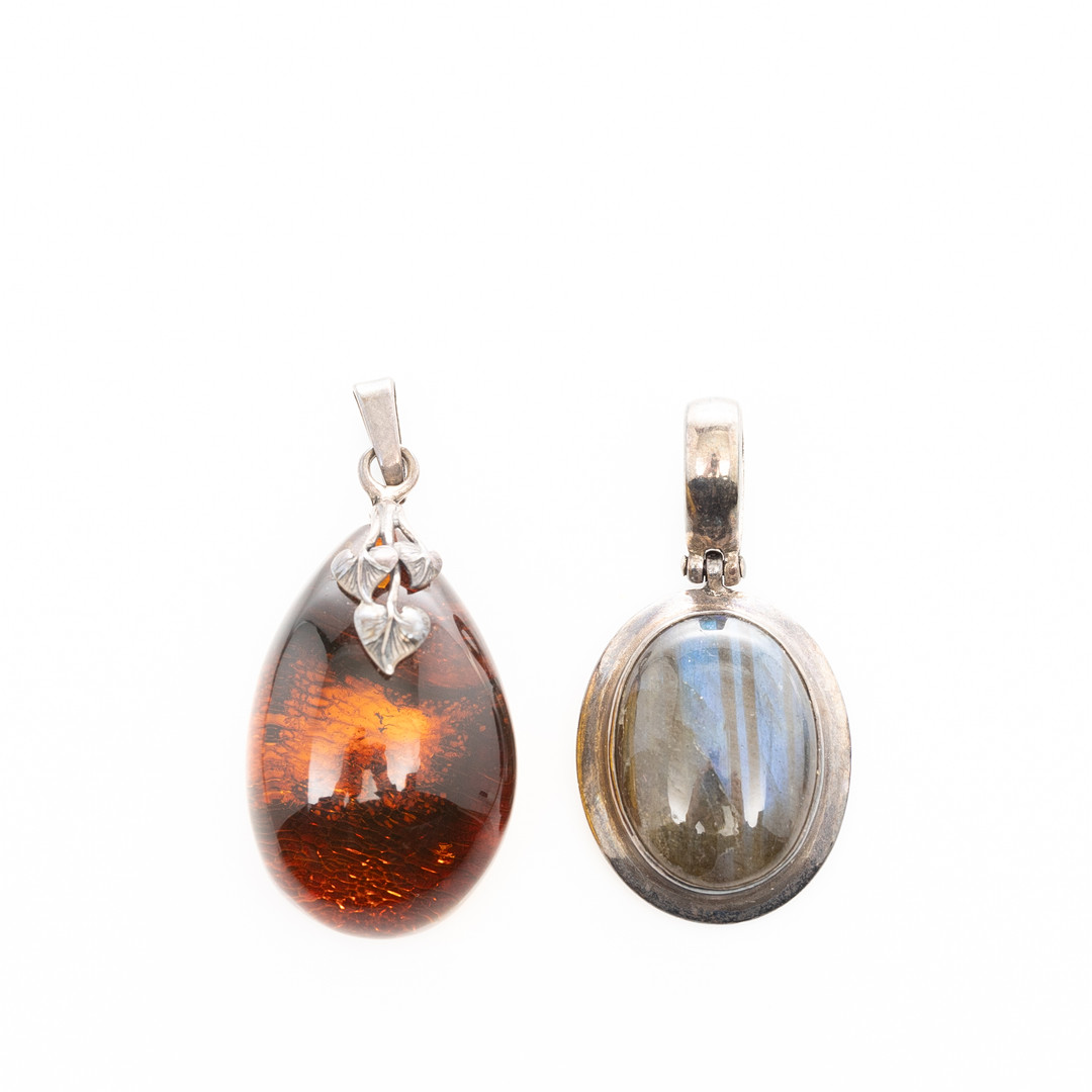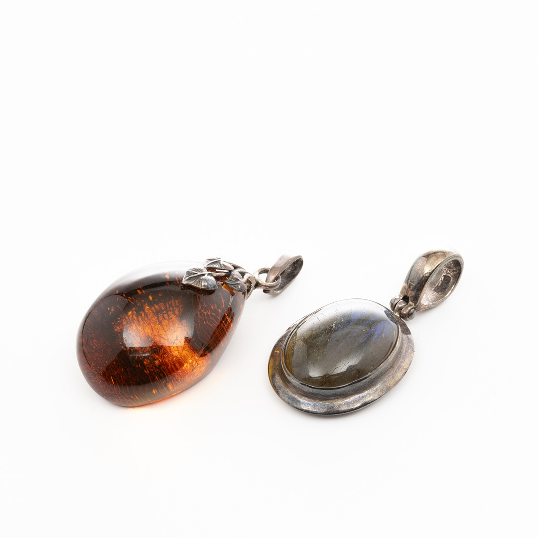 4986197. PENDANTS, 2 pcs, Silver, Amber, Labradorite.