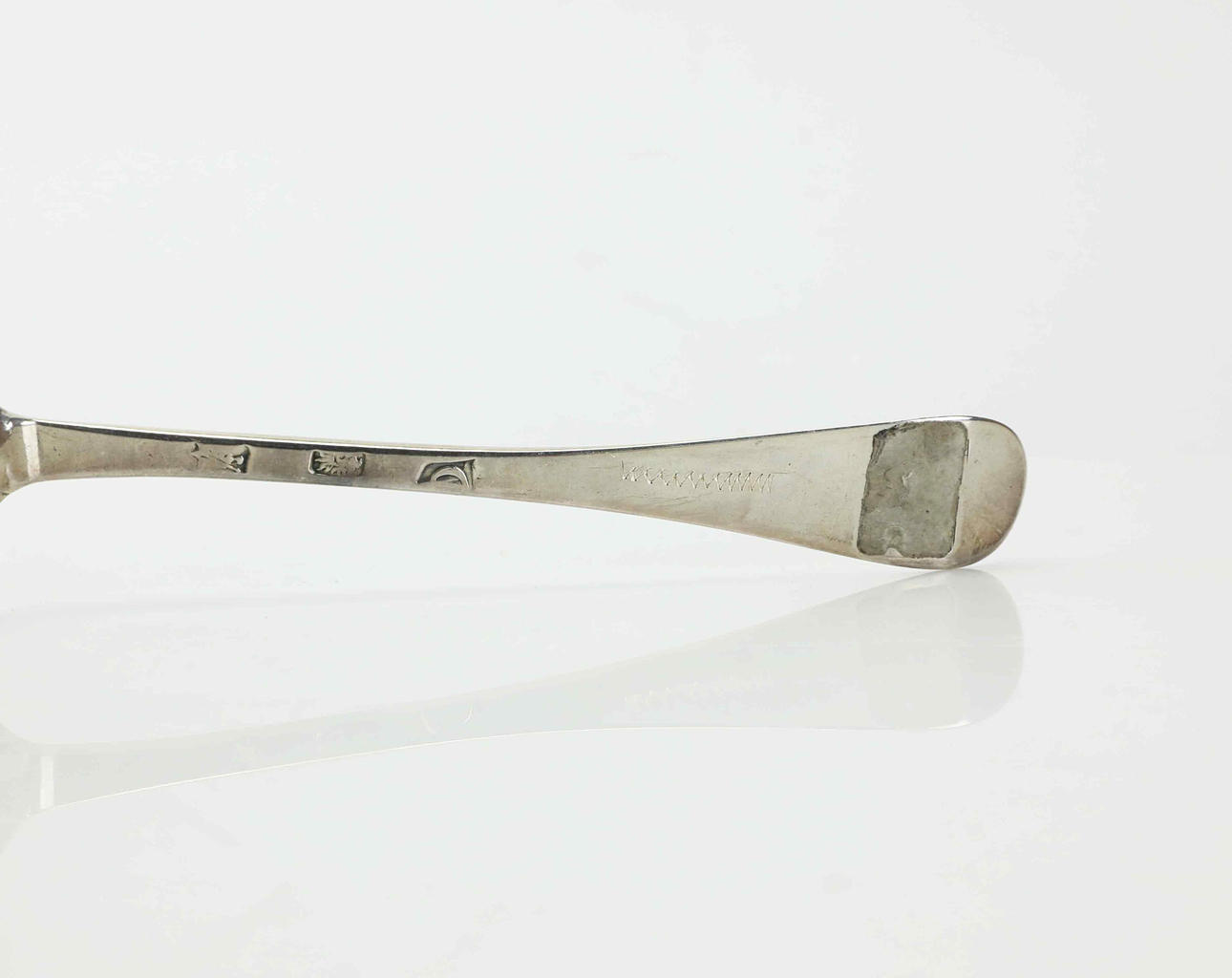 Usage and age-related wear. A small indentation on spoon leaves.