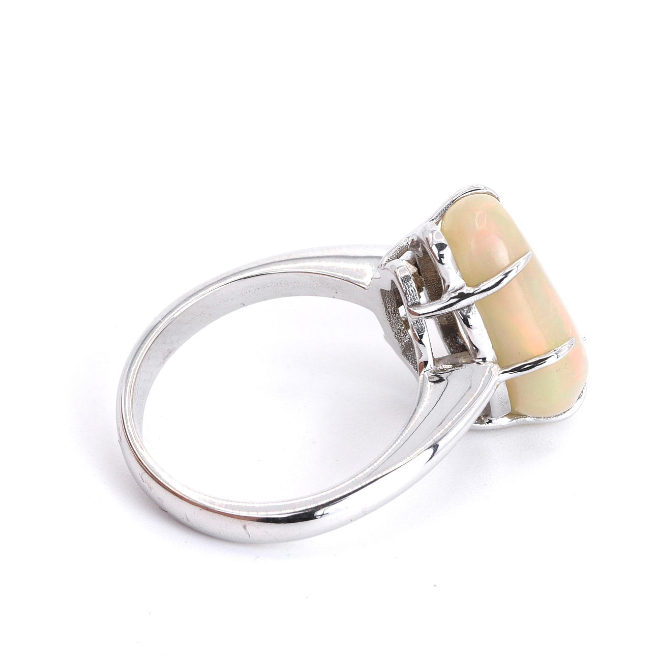 An 18ct white gold ring set with opal. UK ring size: L