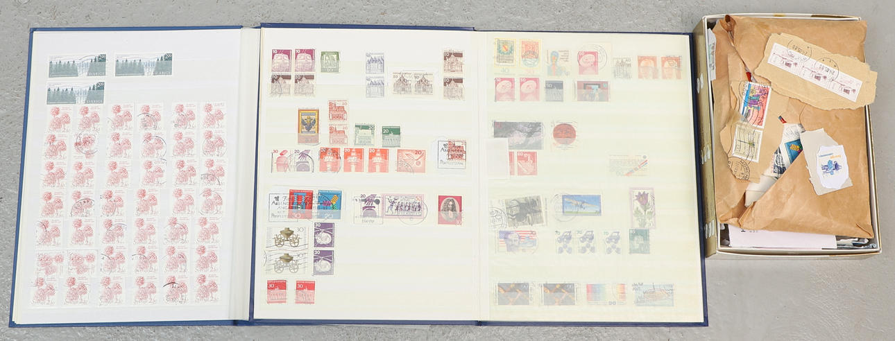 2 albums, approx. 31x23 cm, stamps from different countries, in selection: Cuba, USA, Juguslavien, Sweden, etc.