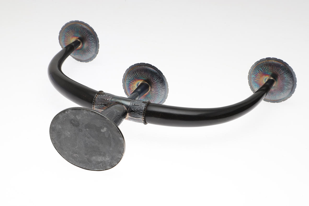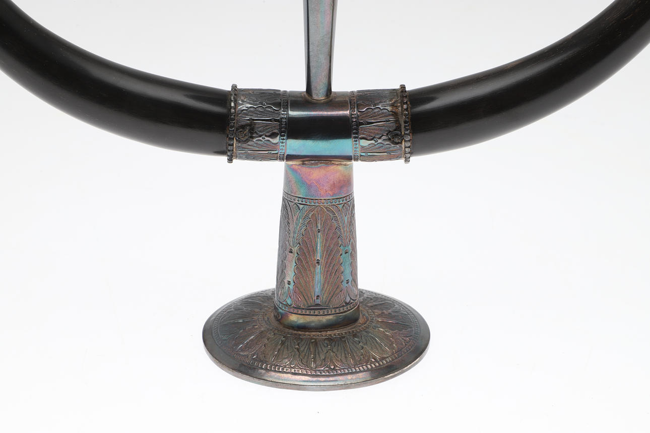 Asian style decorative design, mounts test as silver. Overall Height 27cm x Width 34.5cm.