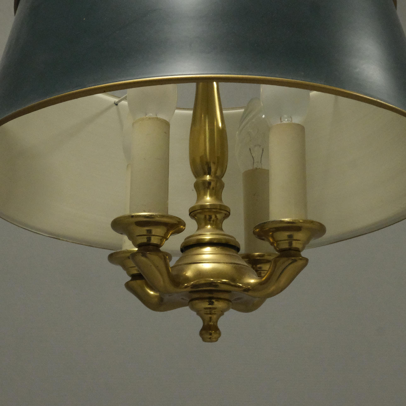 CEILING LAMP. ENGLISH STYLE. BRASS AND SHEET METAL.