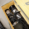 Two wooden boxes with 3 Propact photo lamps, 3 Manfrotto stands, cables, protection etc.