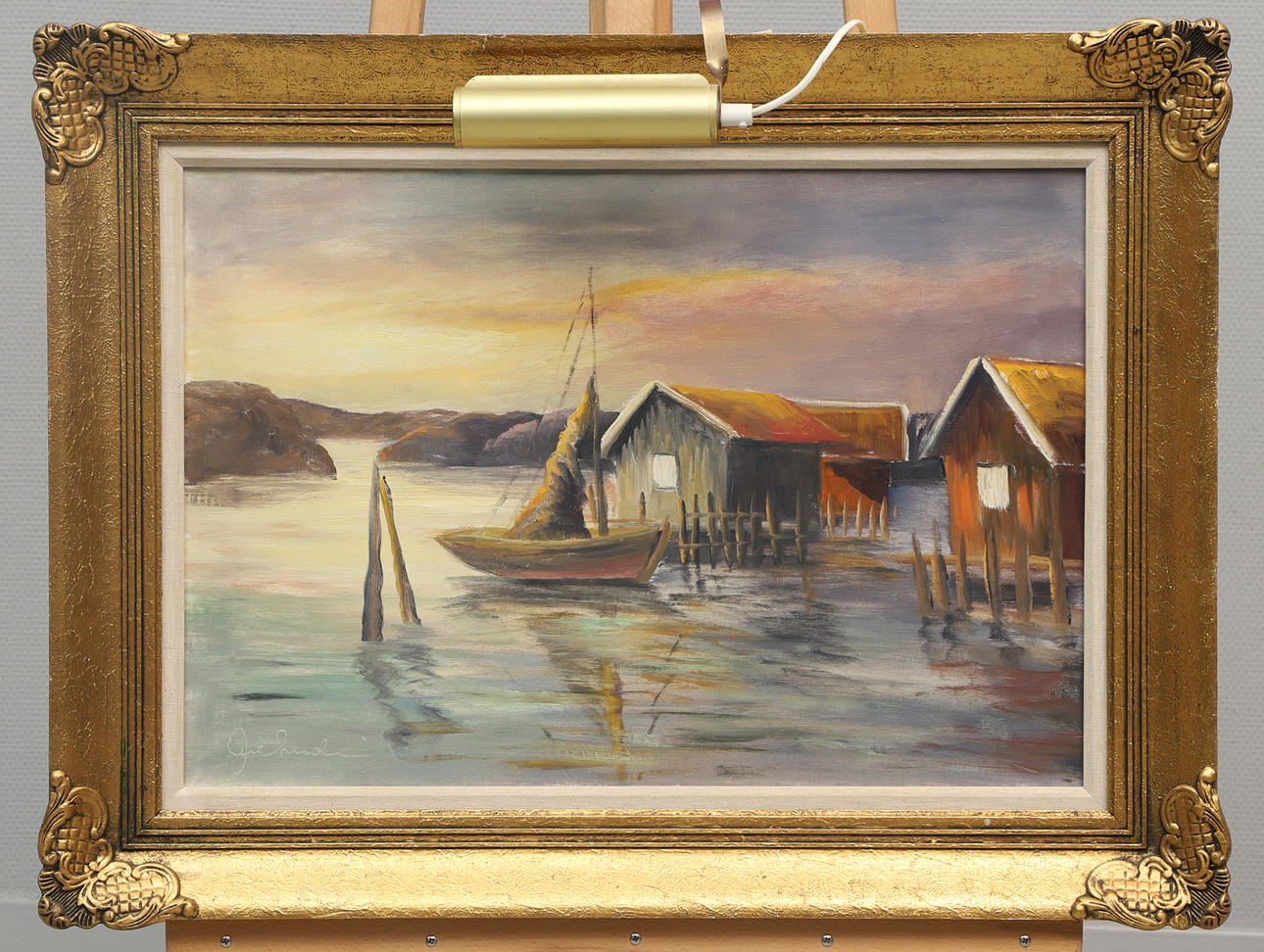 4986684. OIDENTIFIERAD KONSTNÄR. oil on canvas, harbour scene, signed.