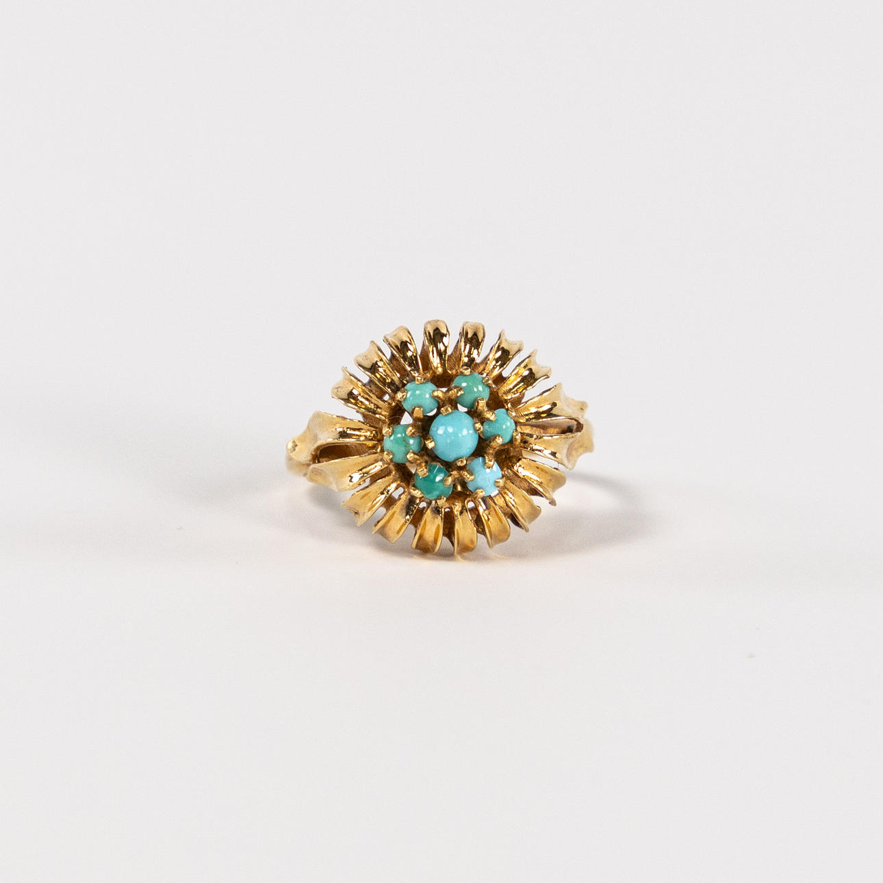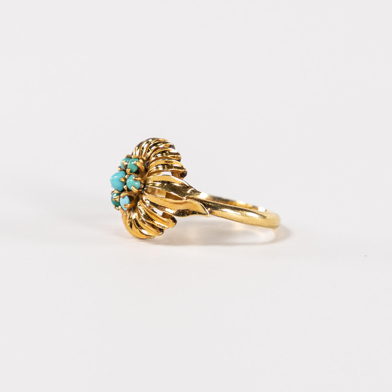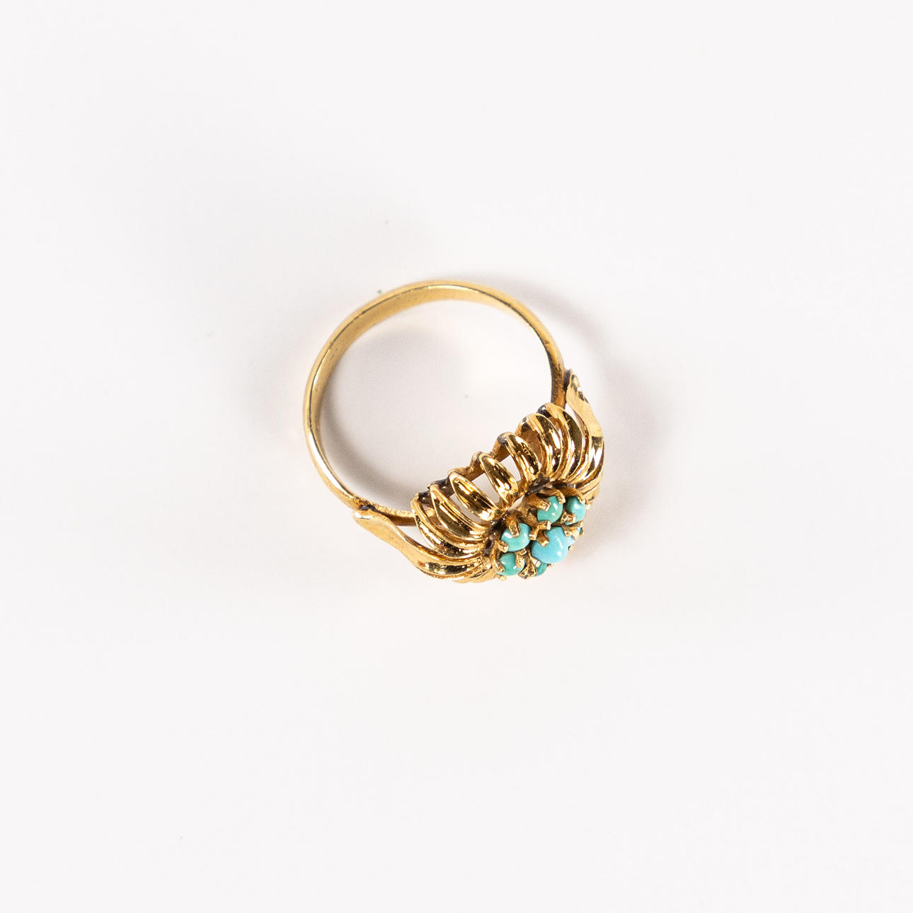Ring, oxygen tested for at least 18k gold, with turquoises, size 17,5, weight 4,7 grams.