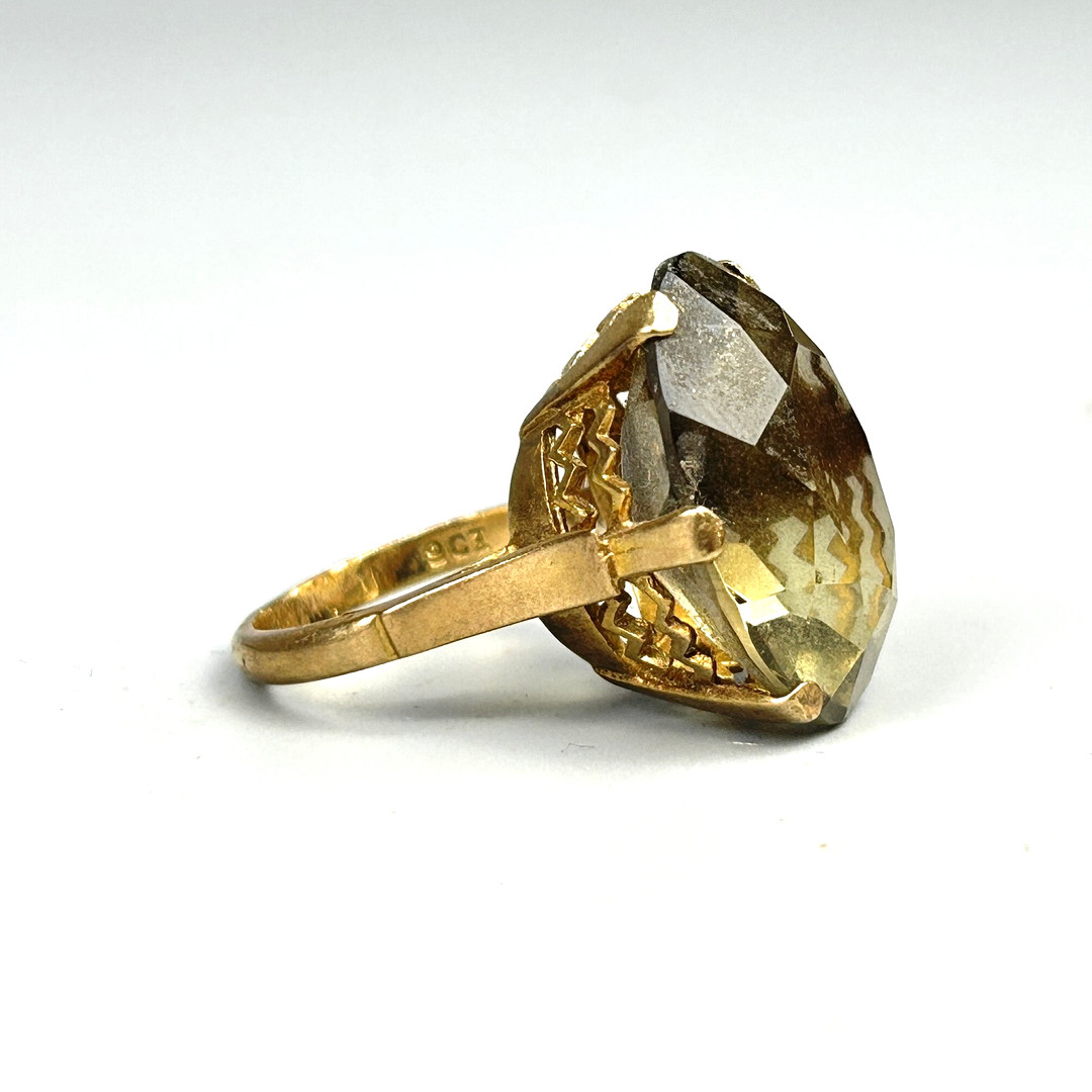 4986729. 9CT GOLD SMOKEY QUARTZ RING.