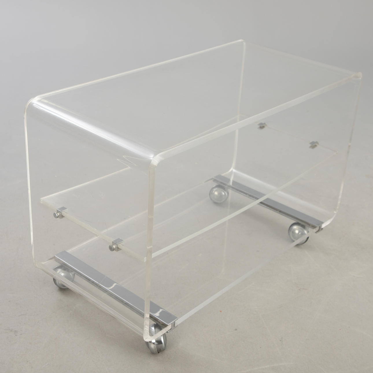 4986995. Acrylic trolley/Hifi rack on wheels, 1990s.