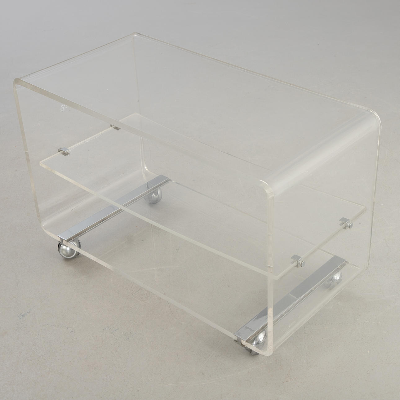 Acrylic trolley/Hifi rack on wheels, 1990s.
