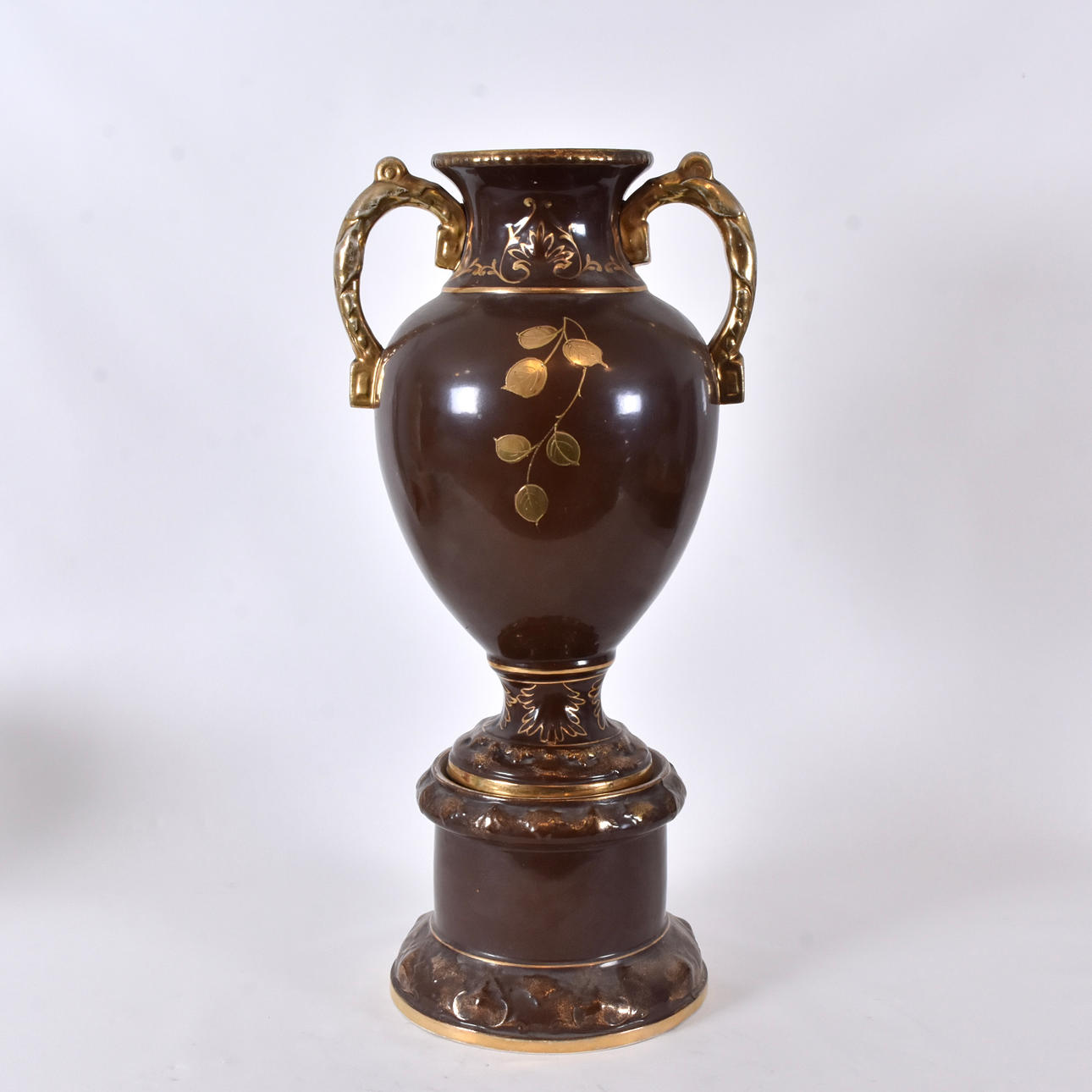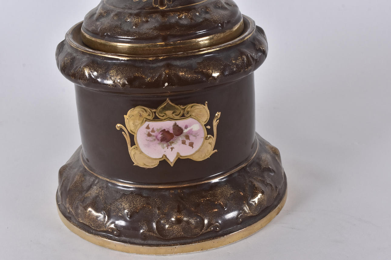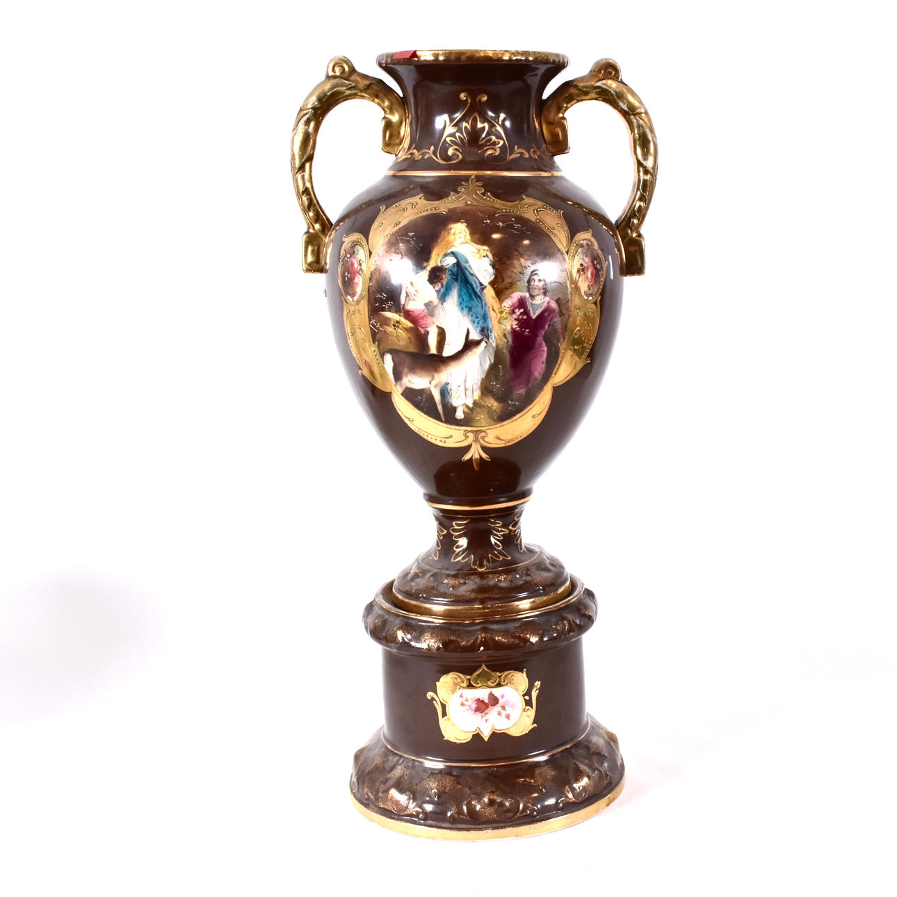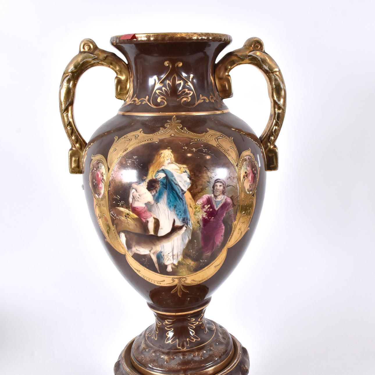 brown and gold decor and polychrome decoration of mythological scene in recessed reserve