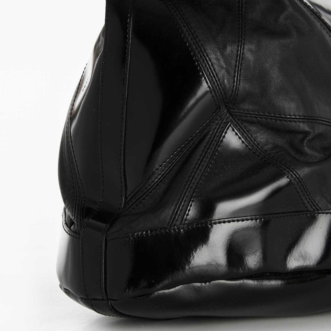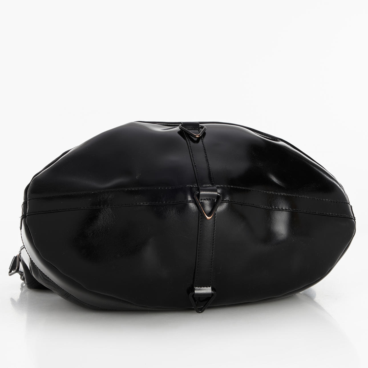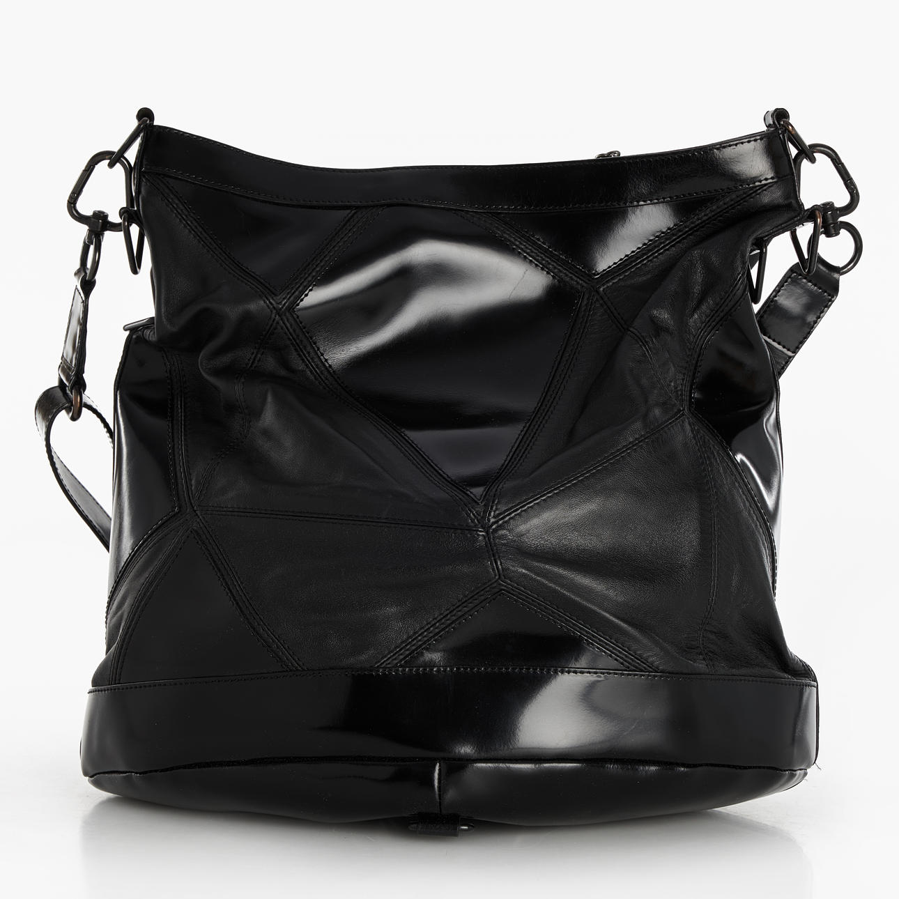 Large black bag with decorative handles and carabiners.