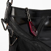 One smaller interior pocket with zipper, detachable and adjustable shoulder strap.