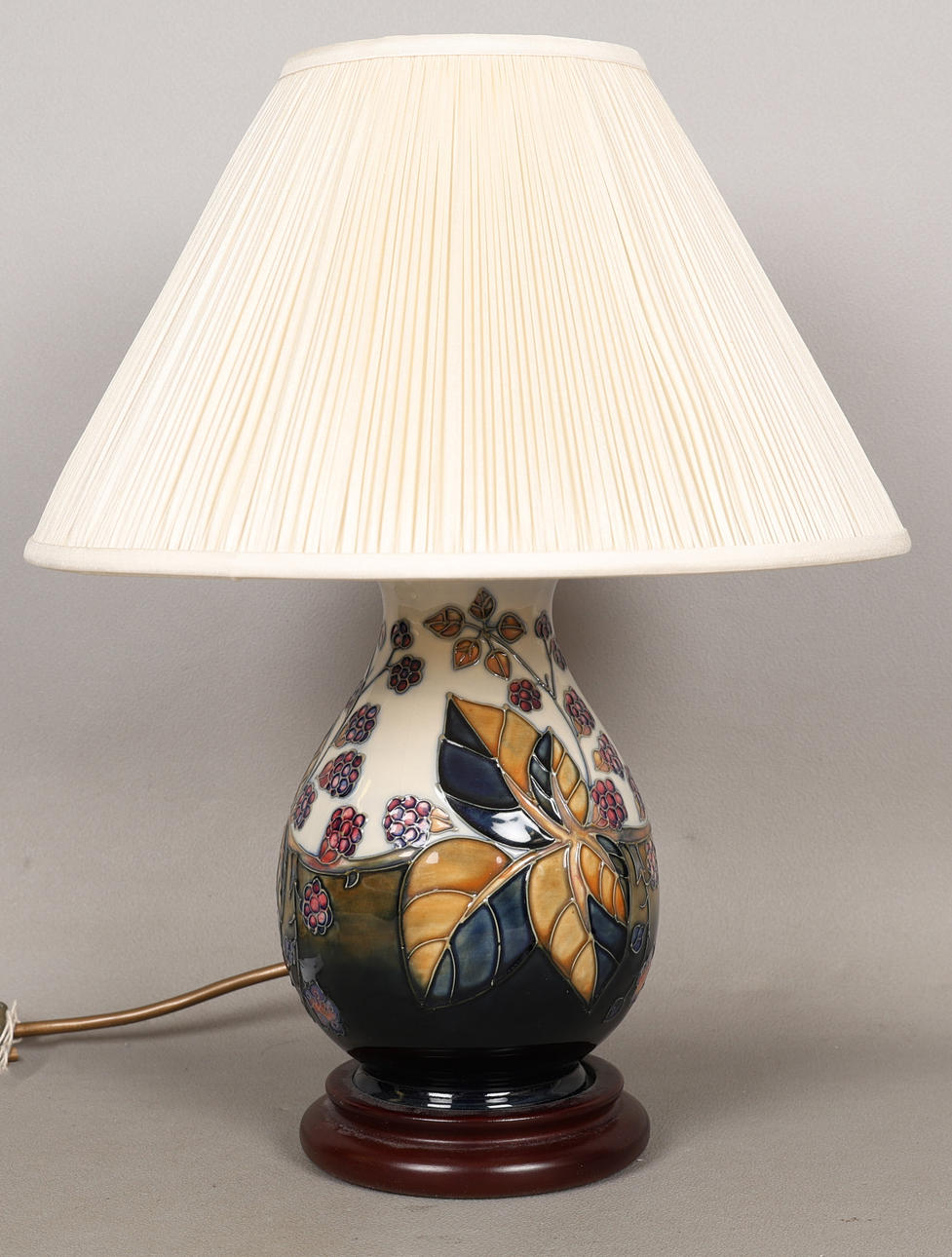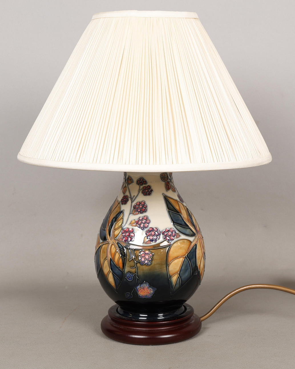 Of squat baluster form, 47cm tall including shade.