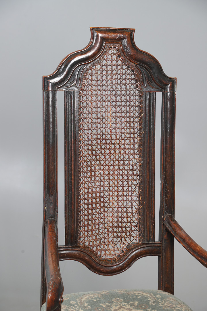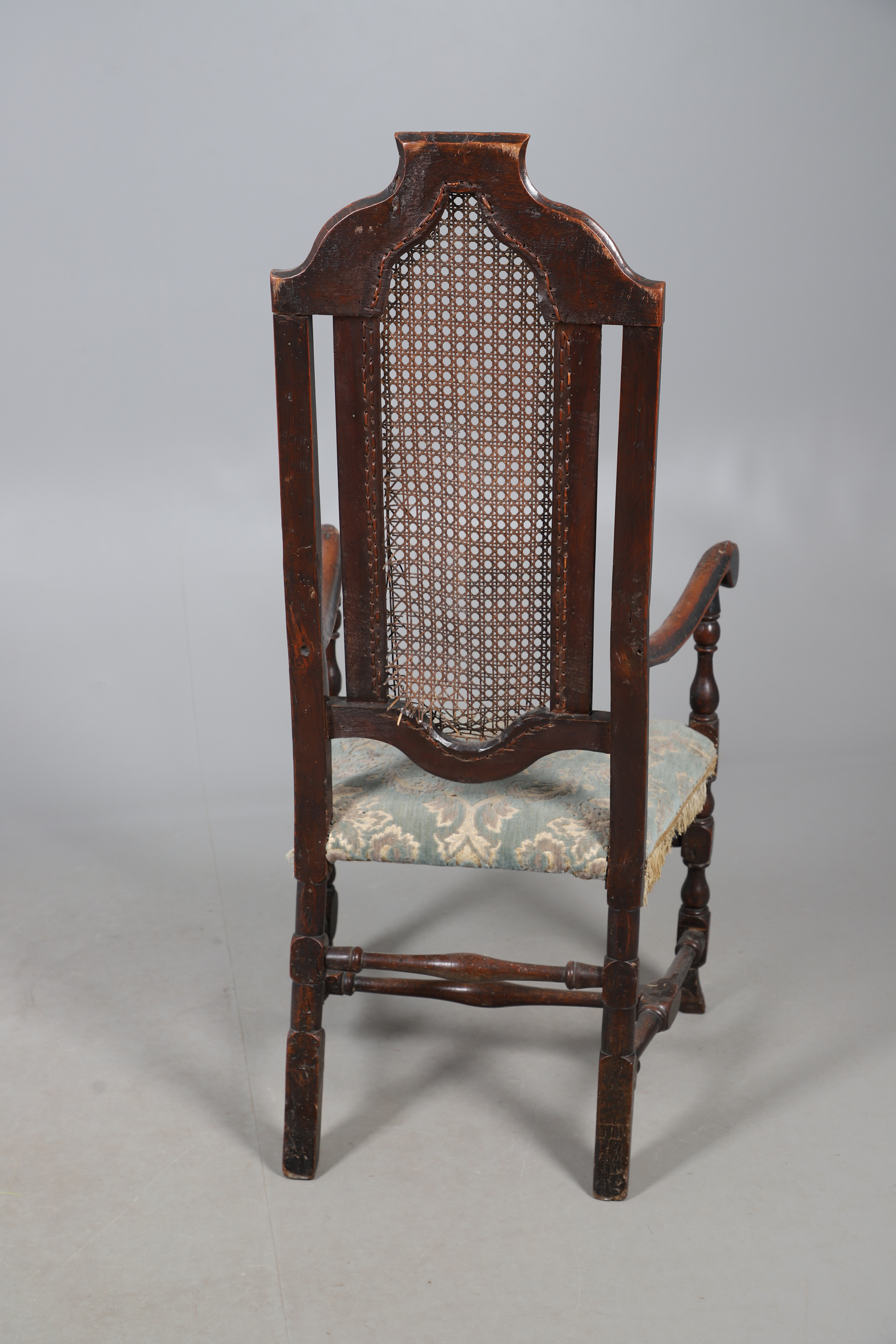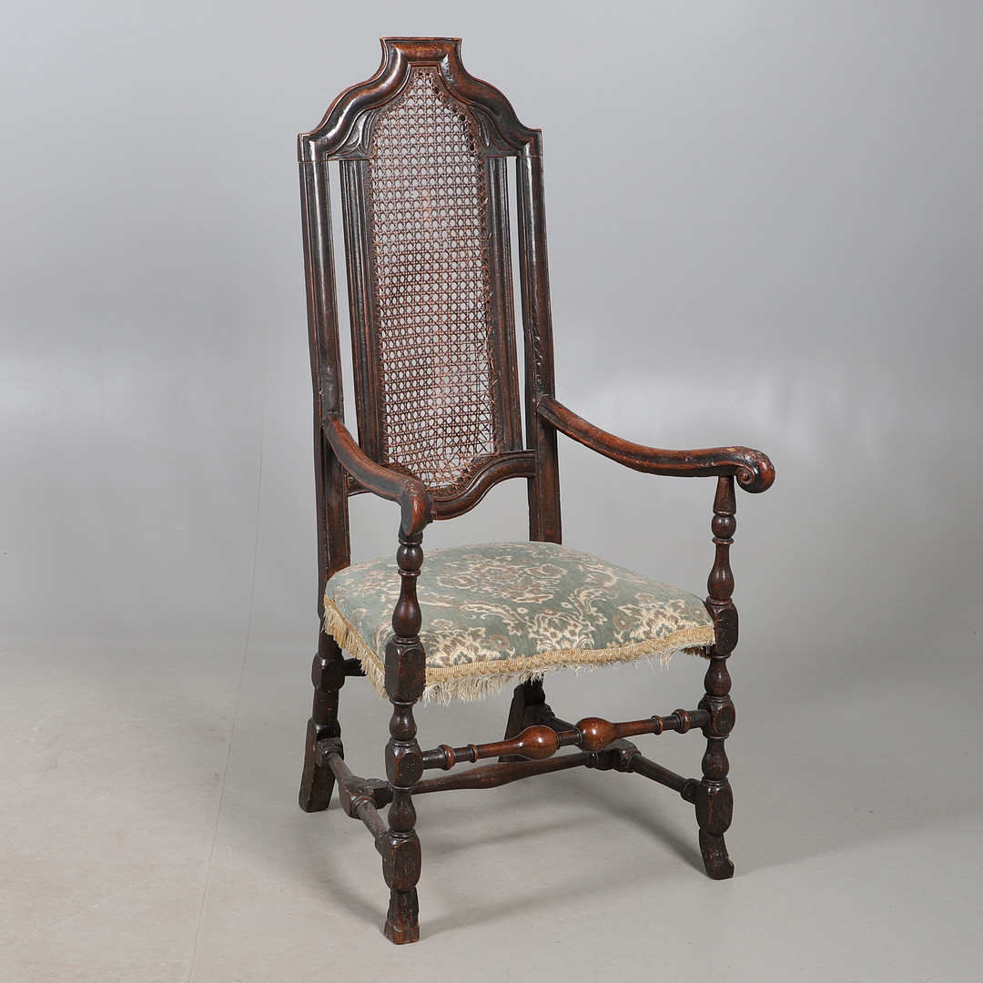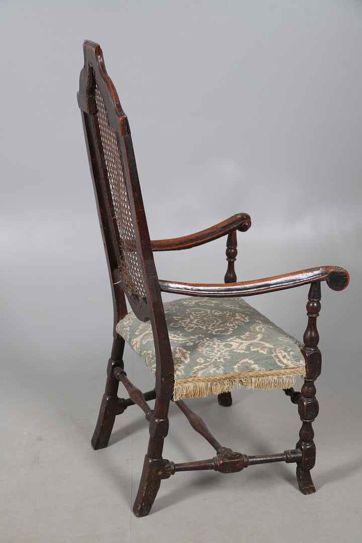 4987508. A CAROLEAN STYLE OAK OPEN ARMCHAIR.