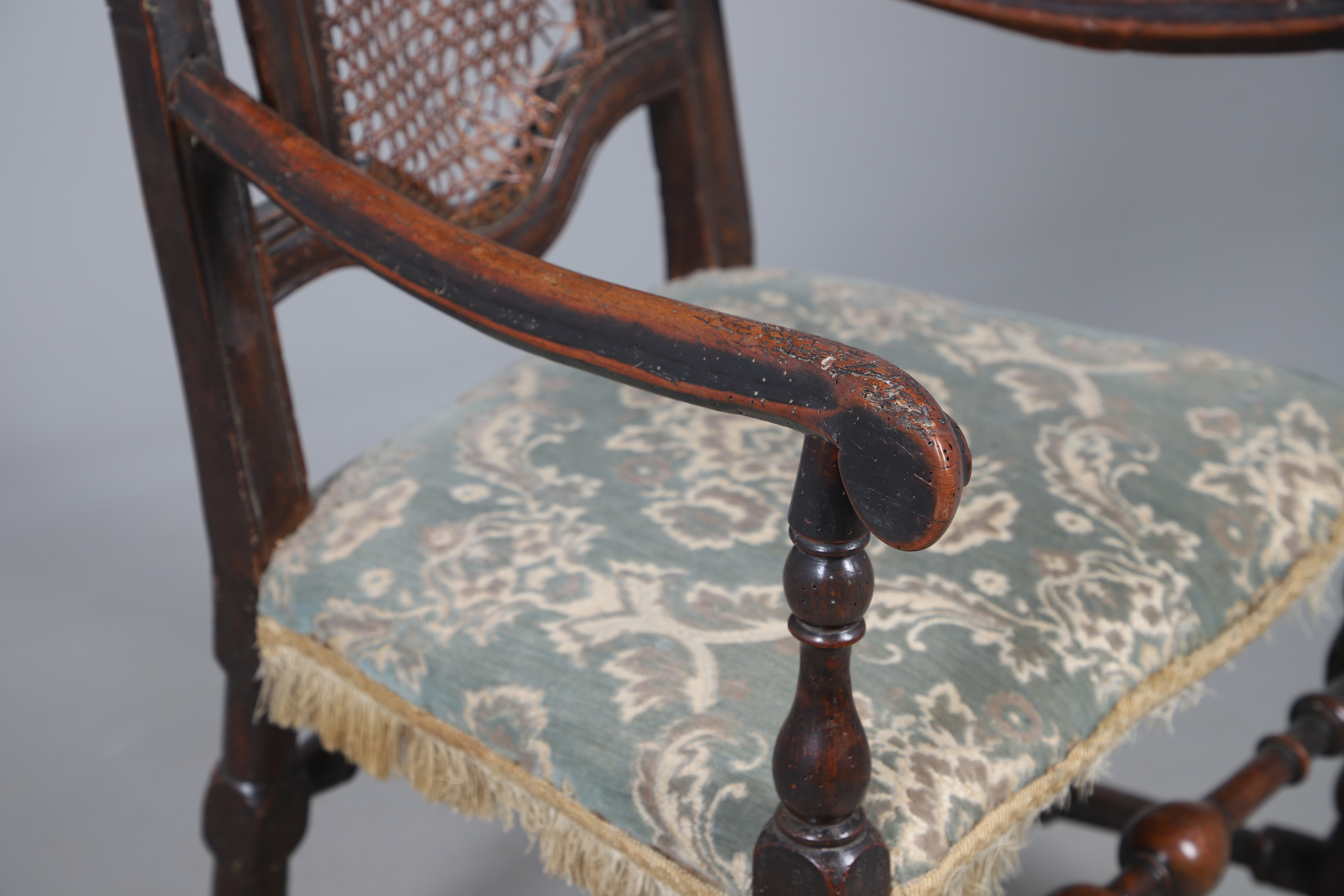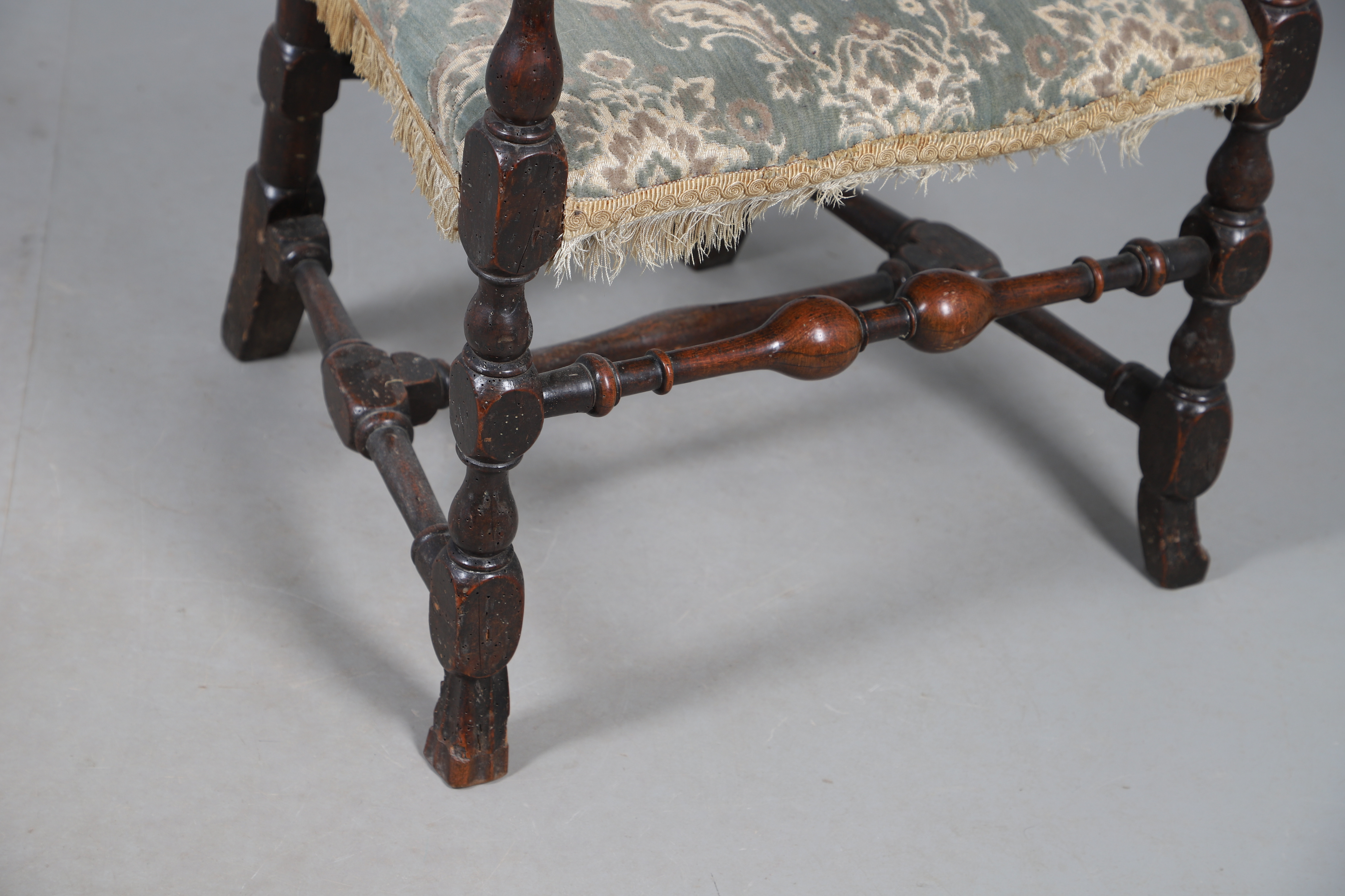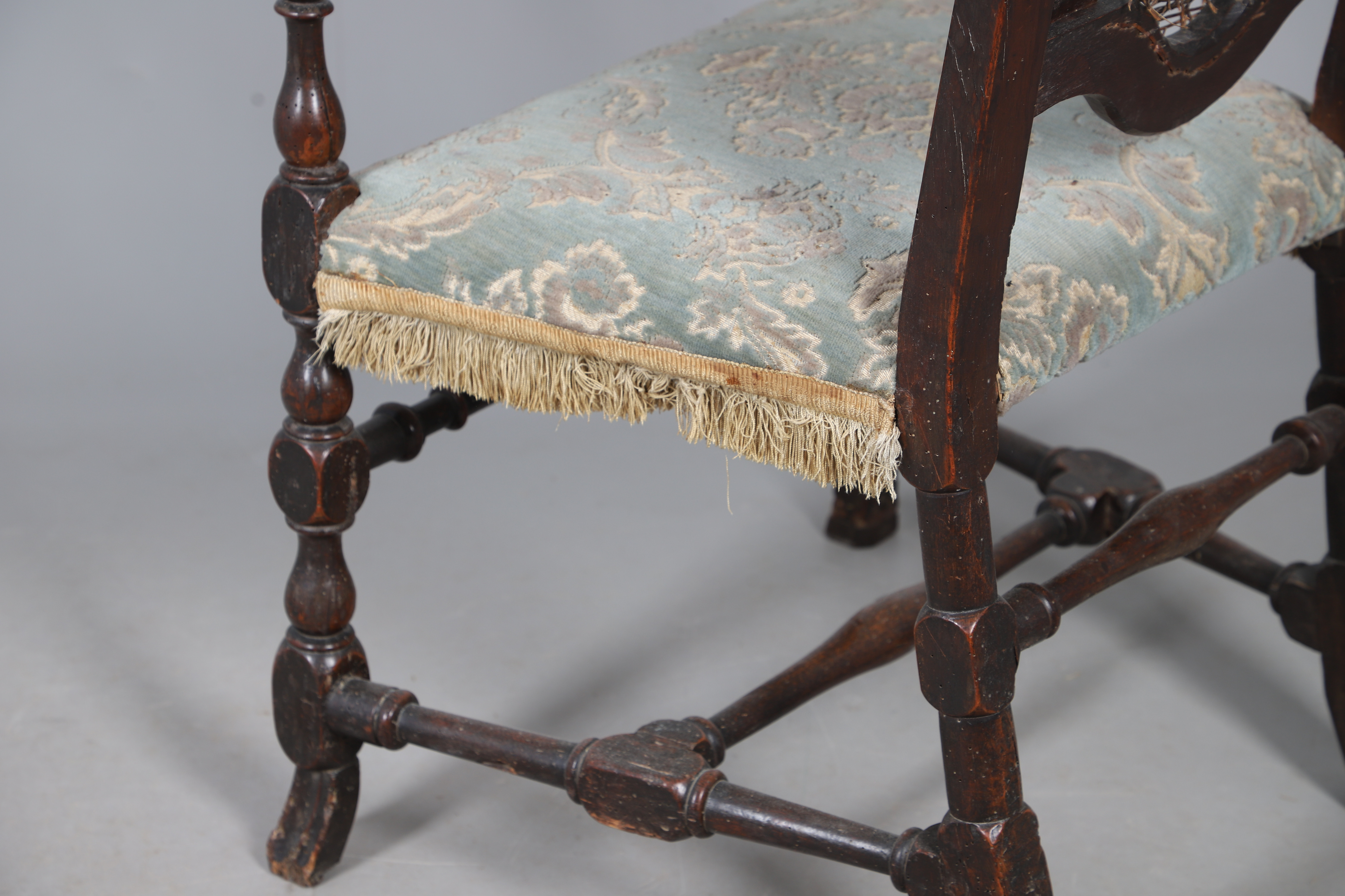 4987508. A CAROLEAN STYLE OAK OPEN ARMCHAIR.