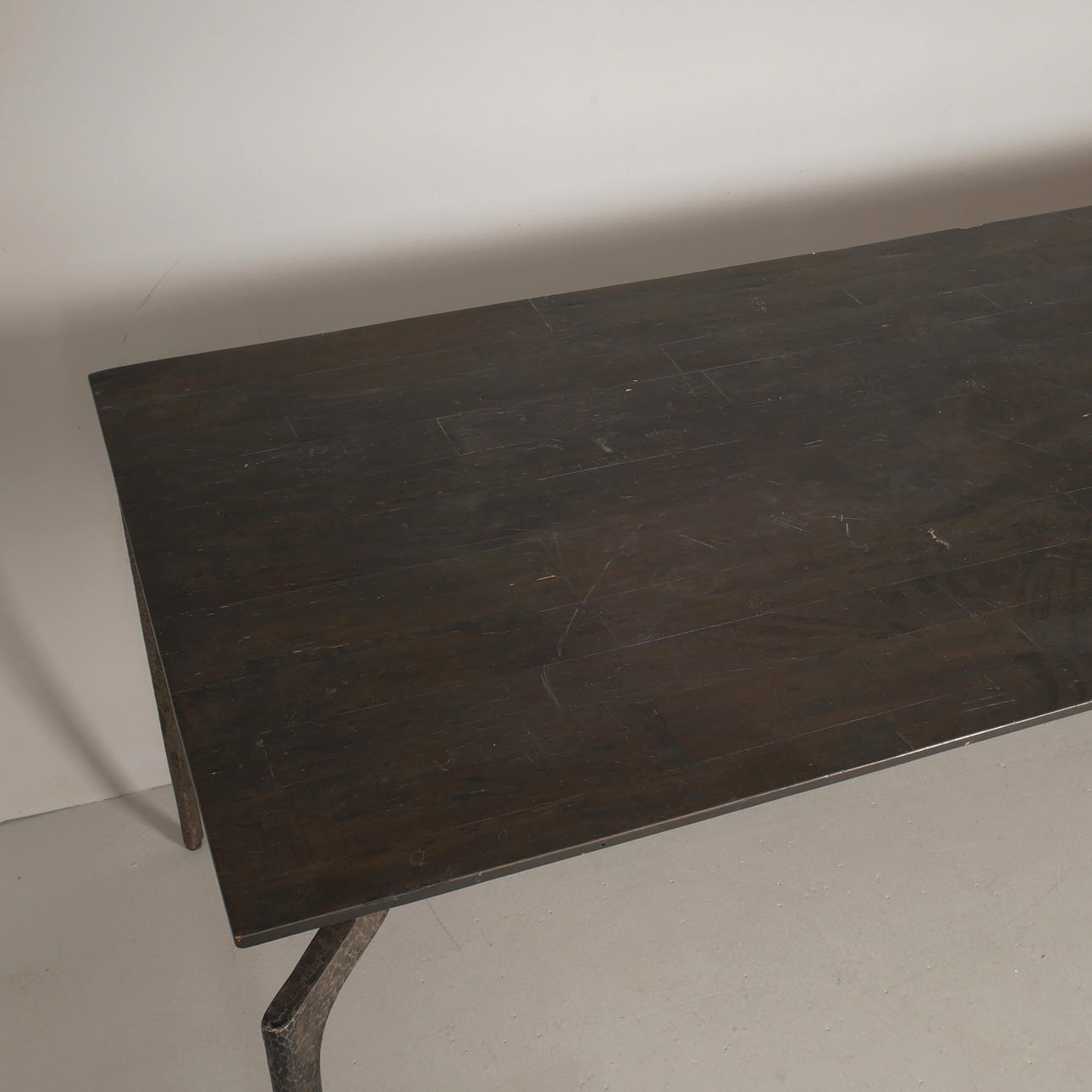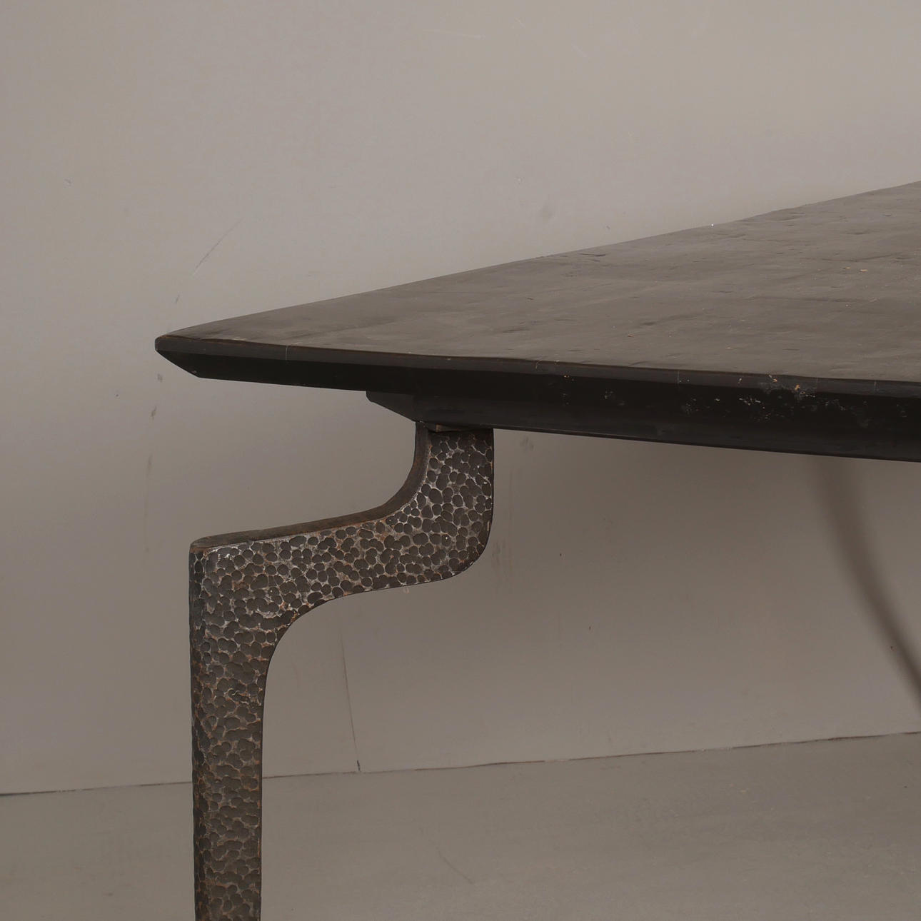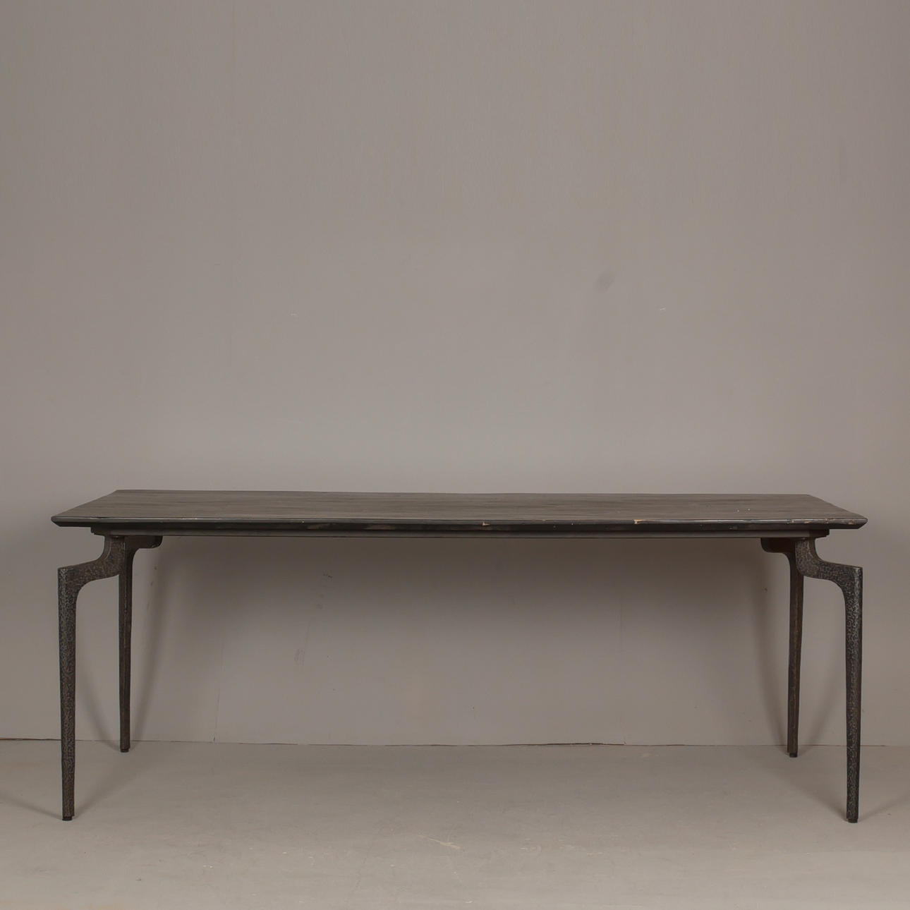 Legs in hammered black lacquered iron. 90x200, height 76 cm.
