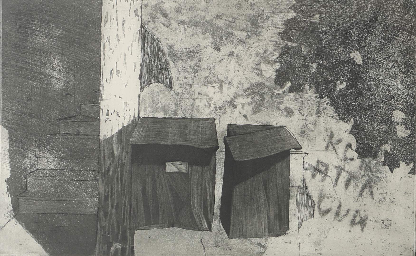 4987726. JAN FORSBERG. Mailboxes, etching, signed 1963.
