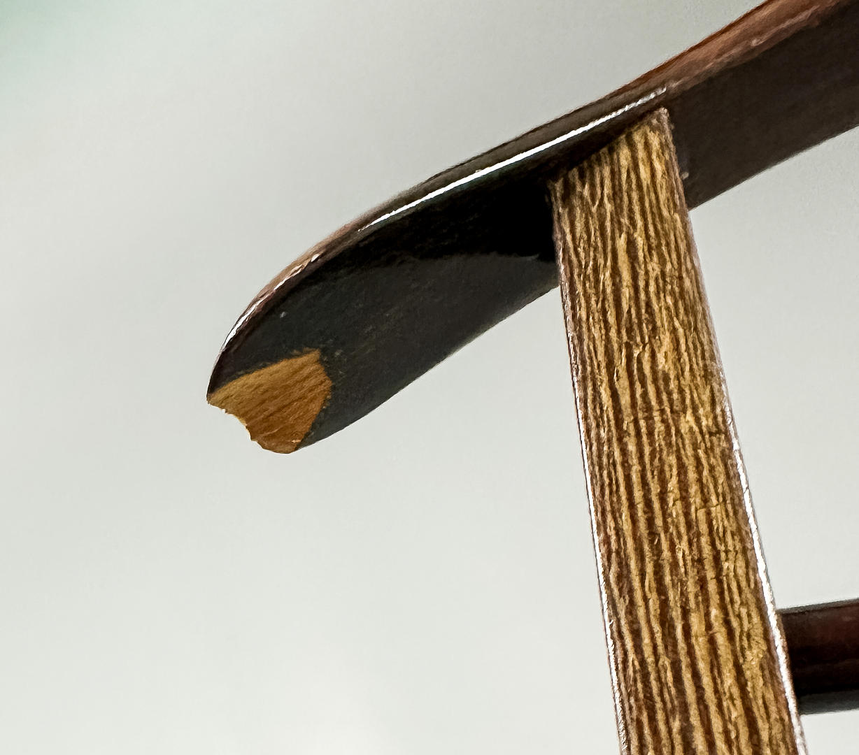 Marks, stains, damage on one side of the gallows in the form of rejection.