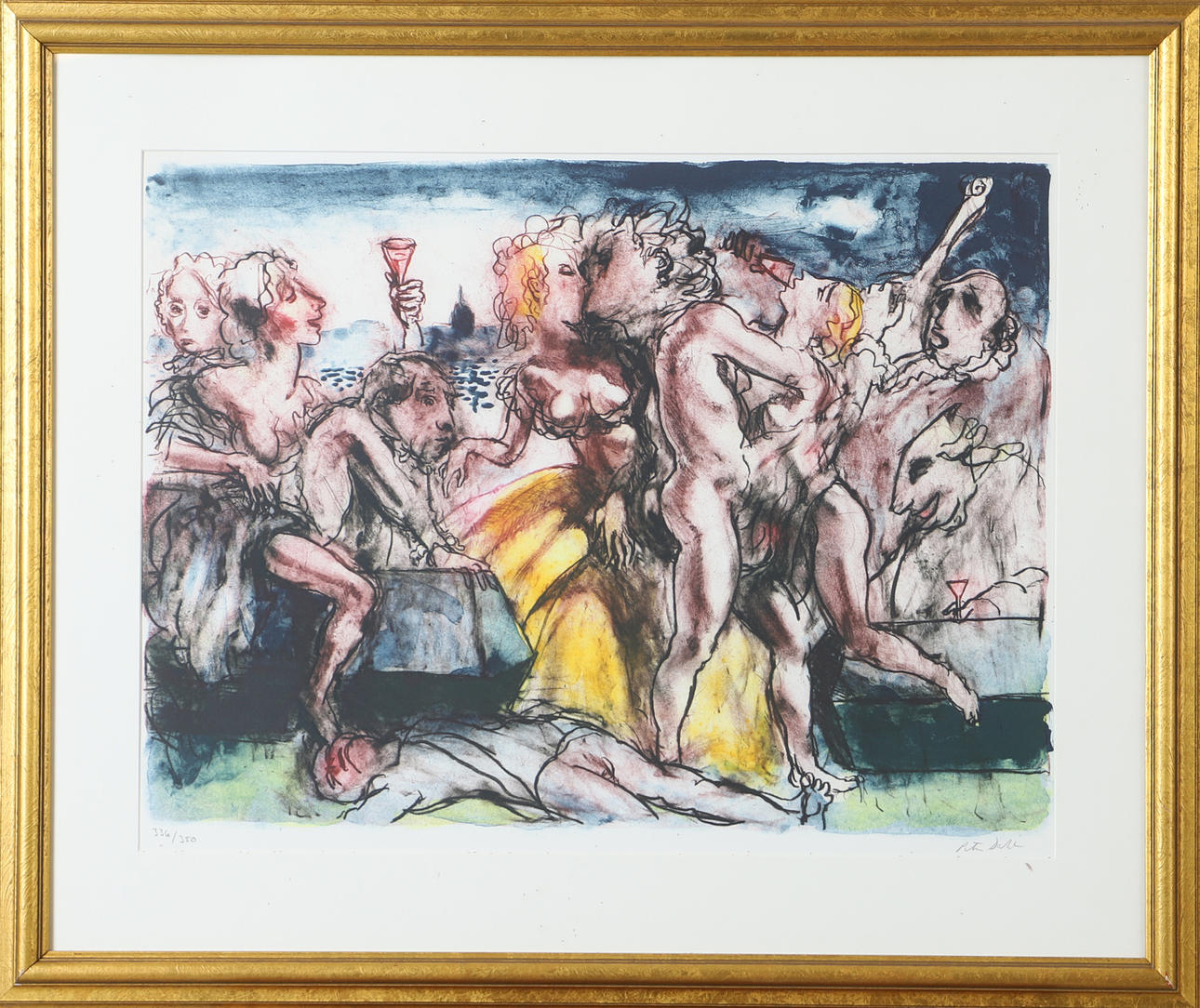 PETER DAHL. Fredman's entourage, lithograph in colours, signed.