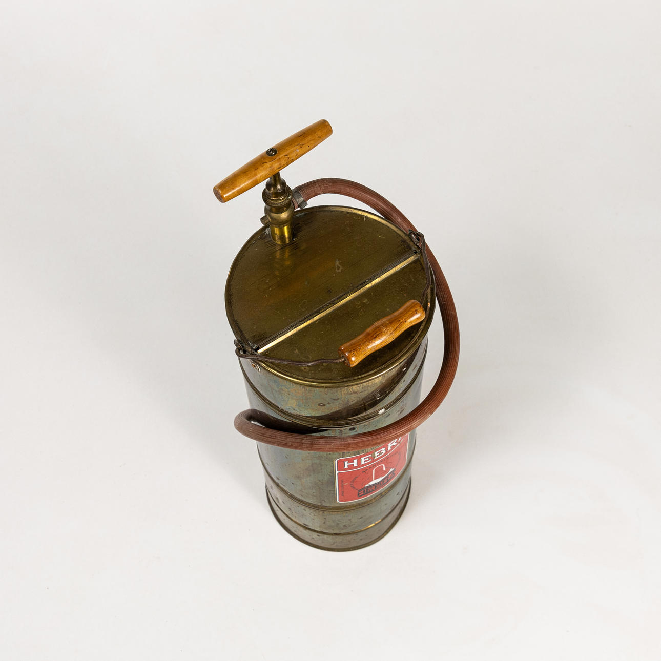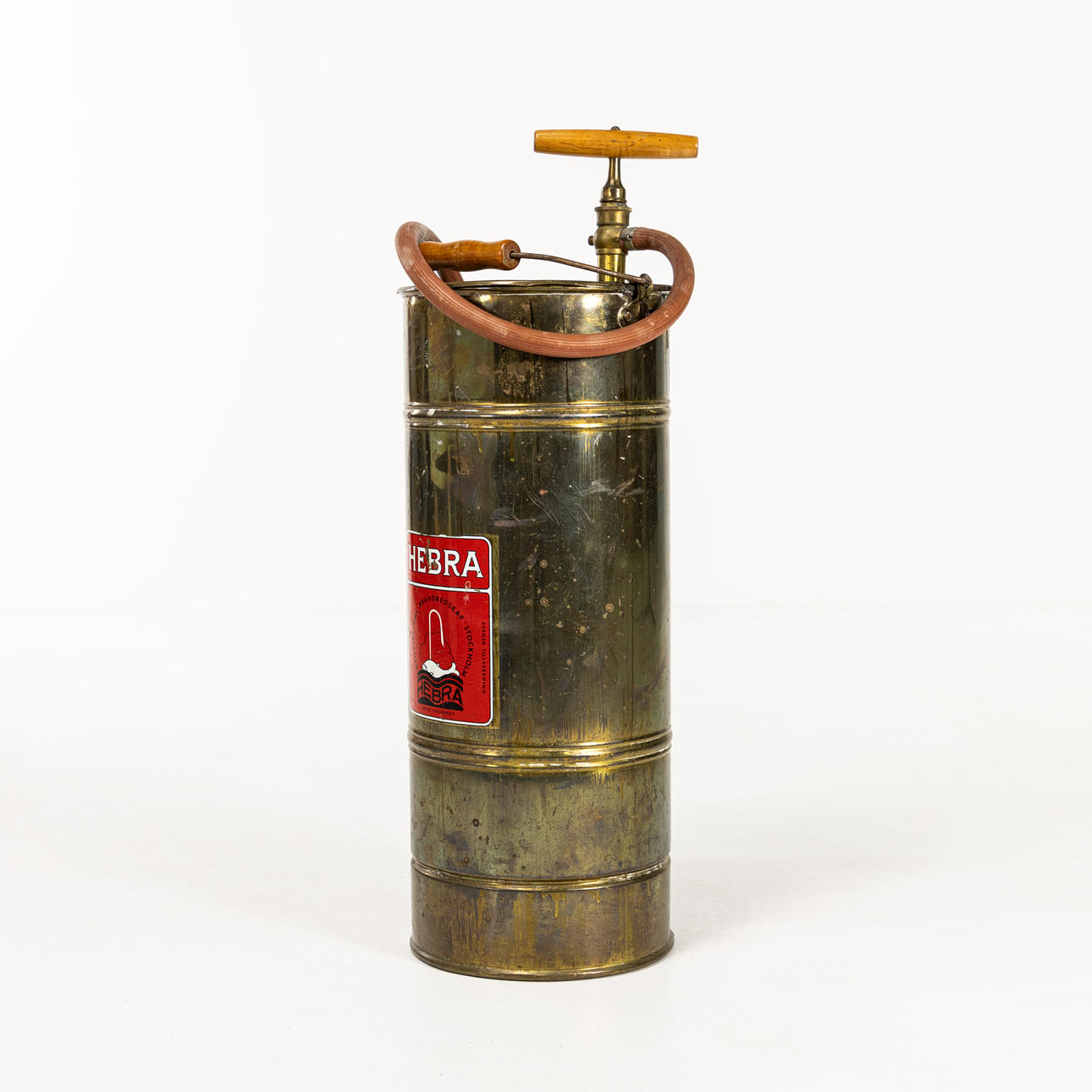 Fire sprayer, brass, 20th century, Hebra, height 73 cm.
