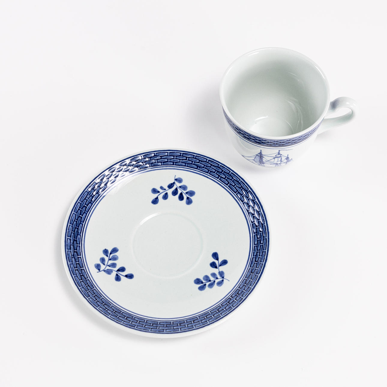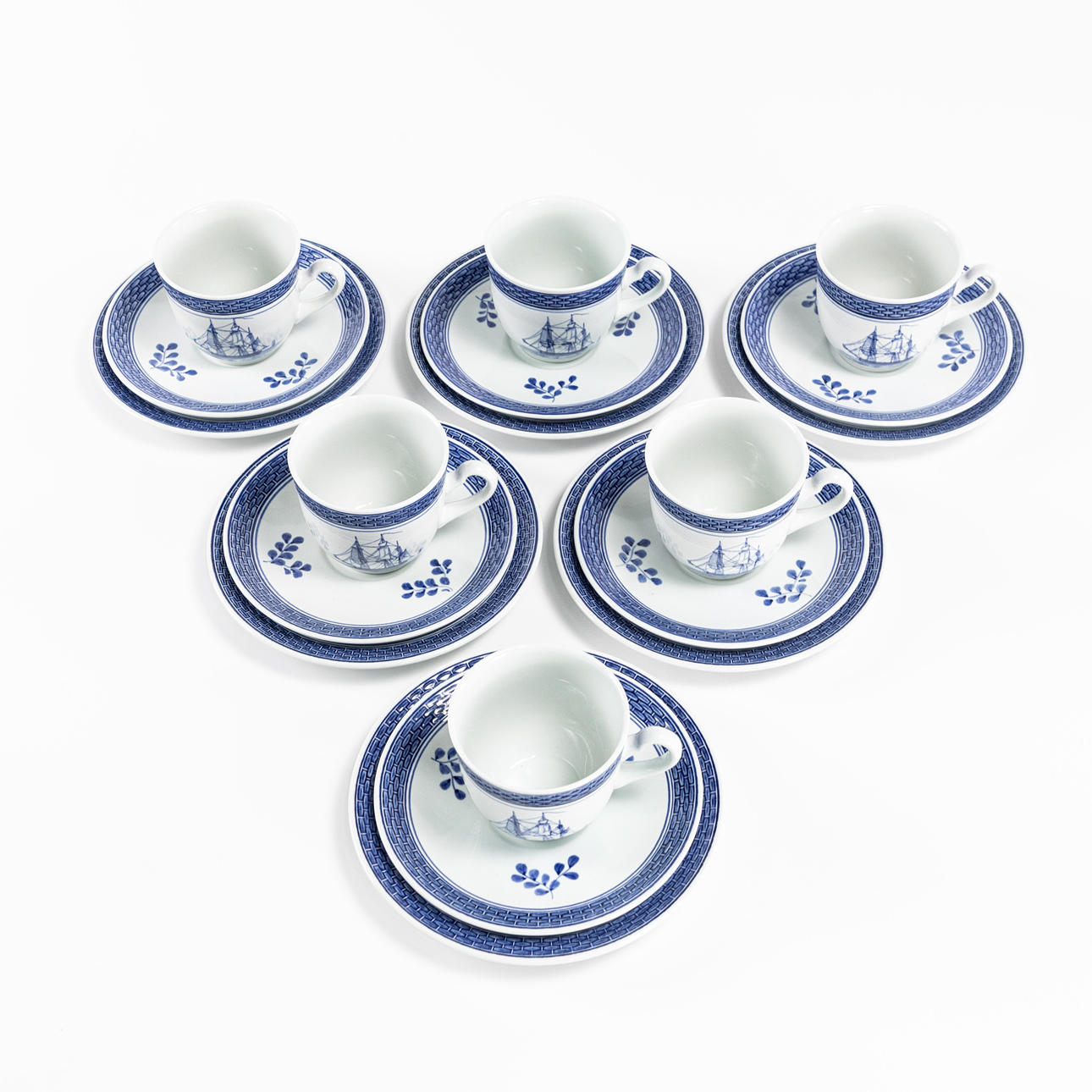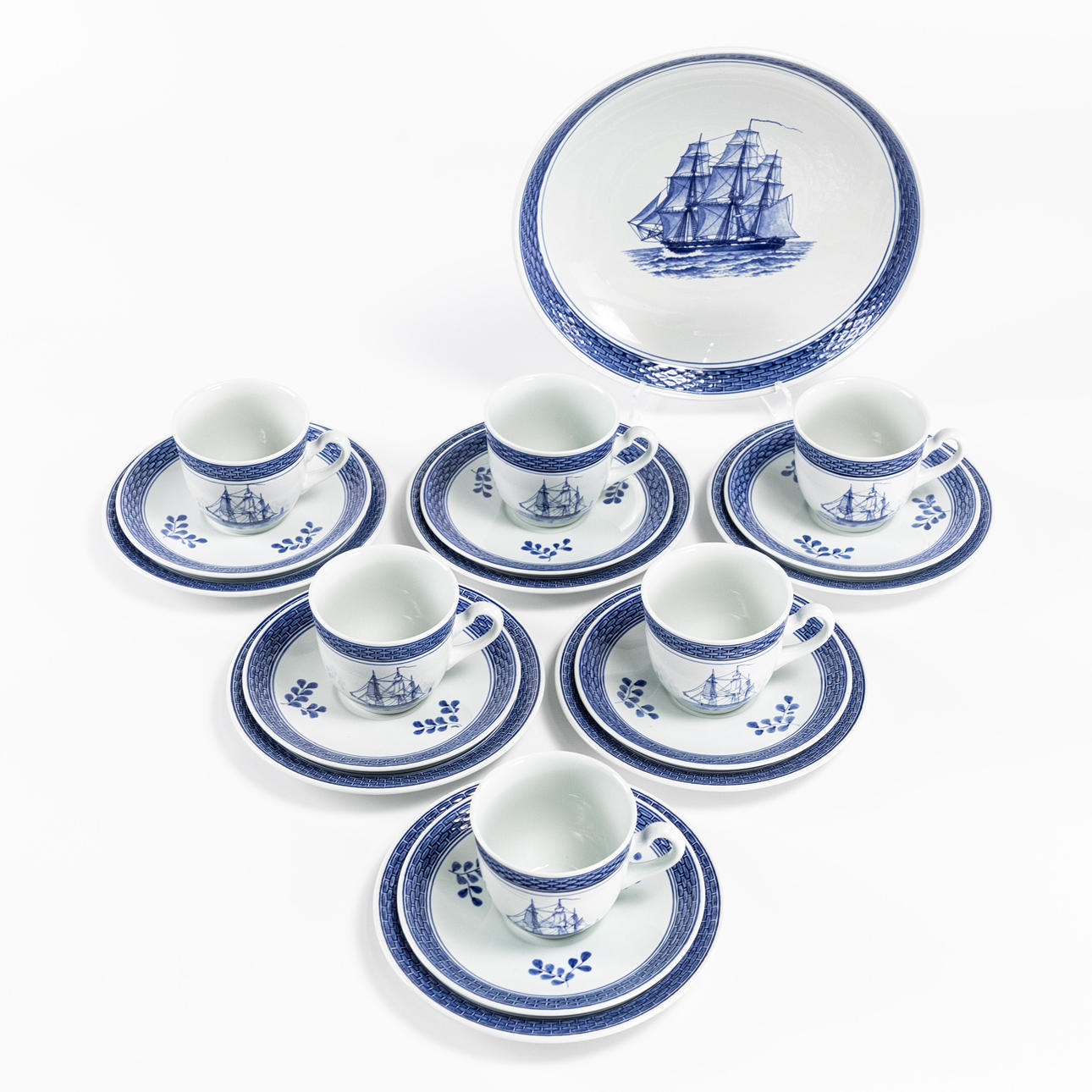 COFFEE SET, 19 pieces, decor in blue, fol. a. in the form of full rigger, Royal Copenhagen Fajance, Denmark