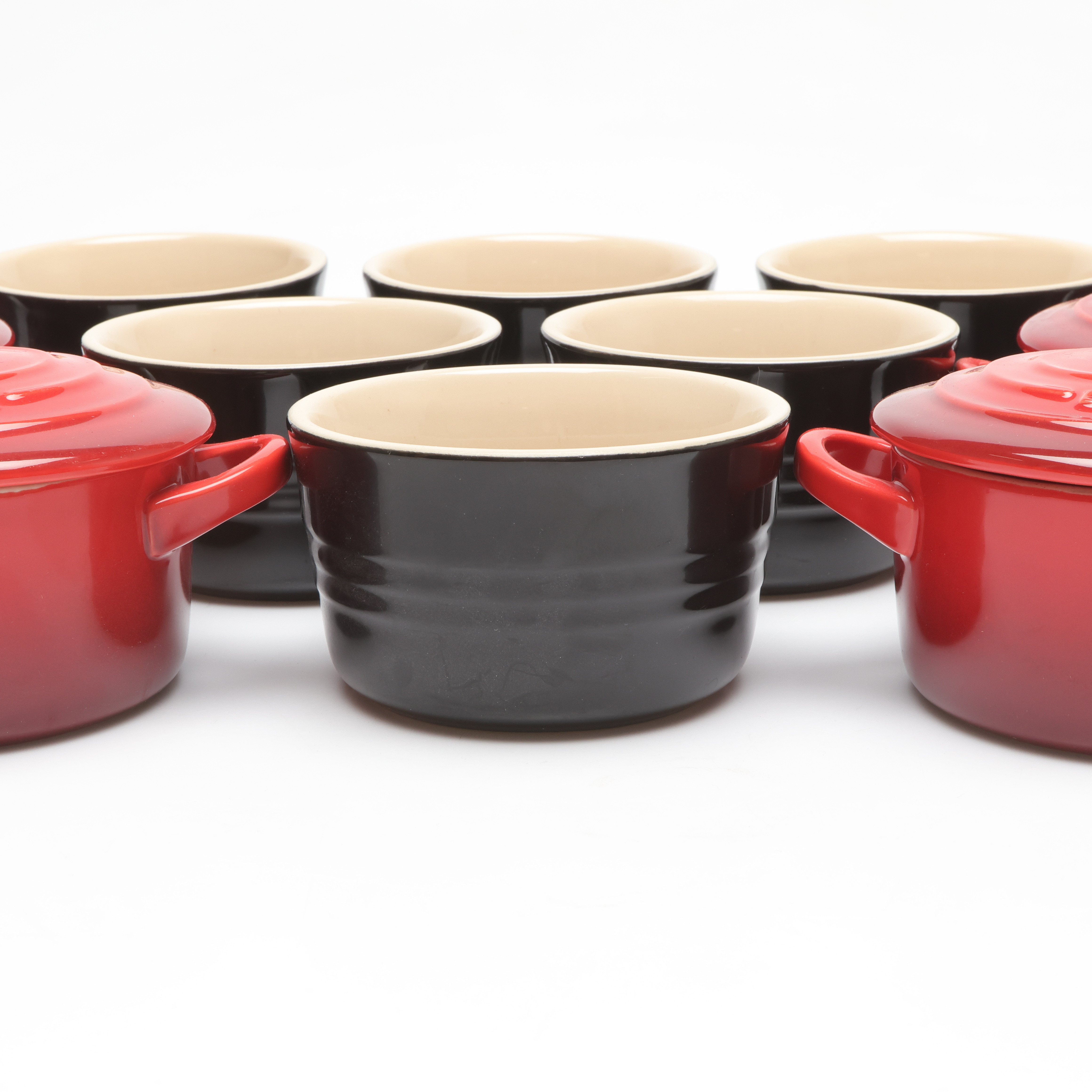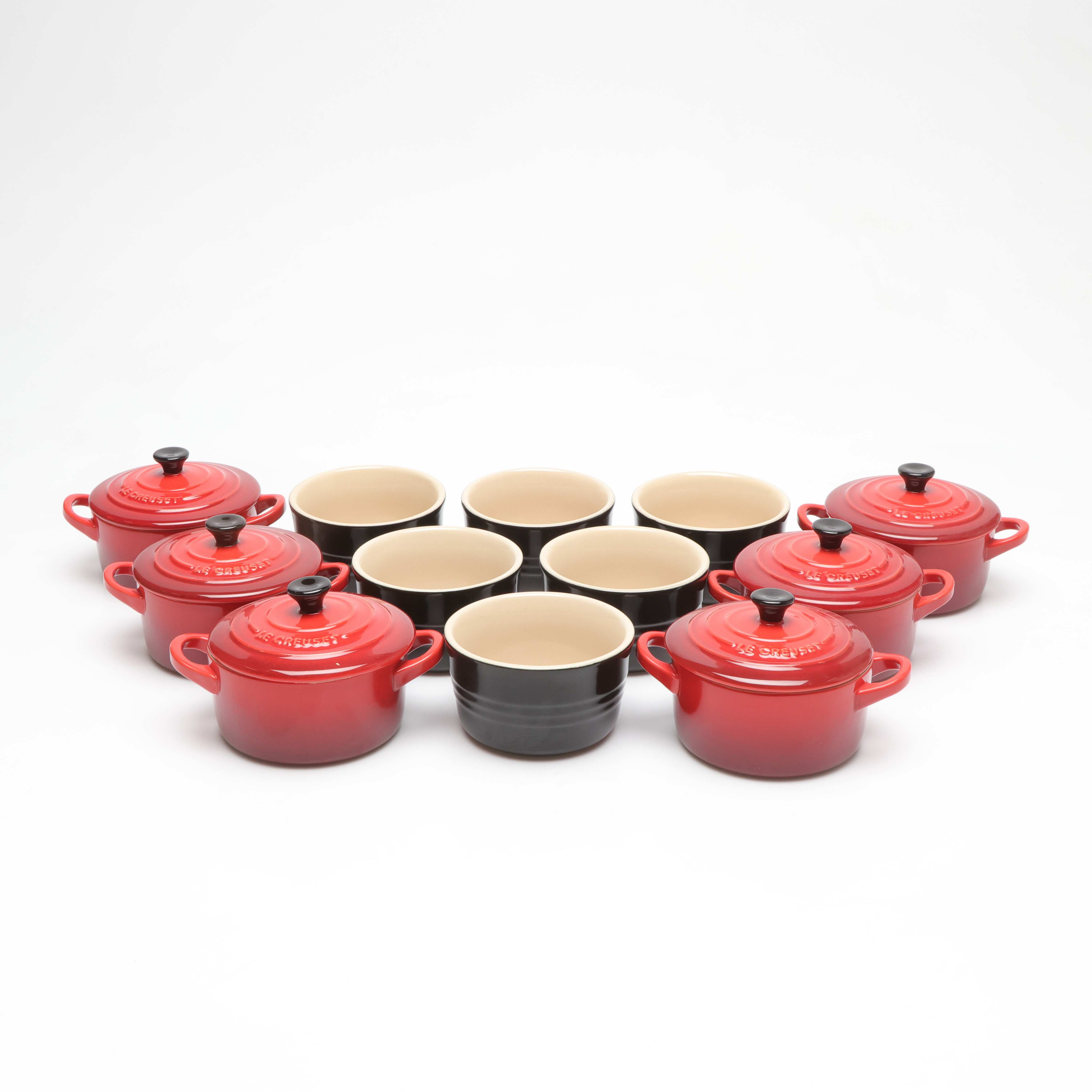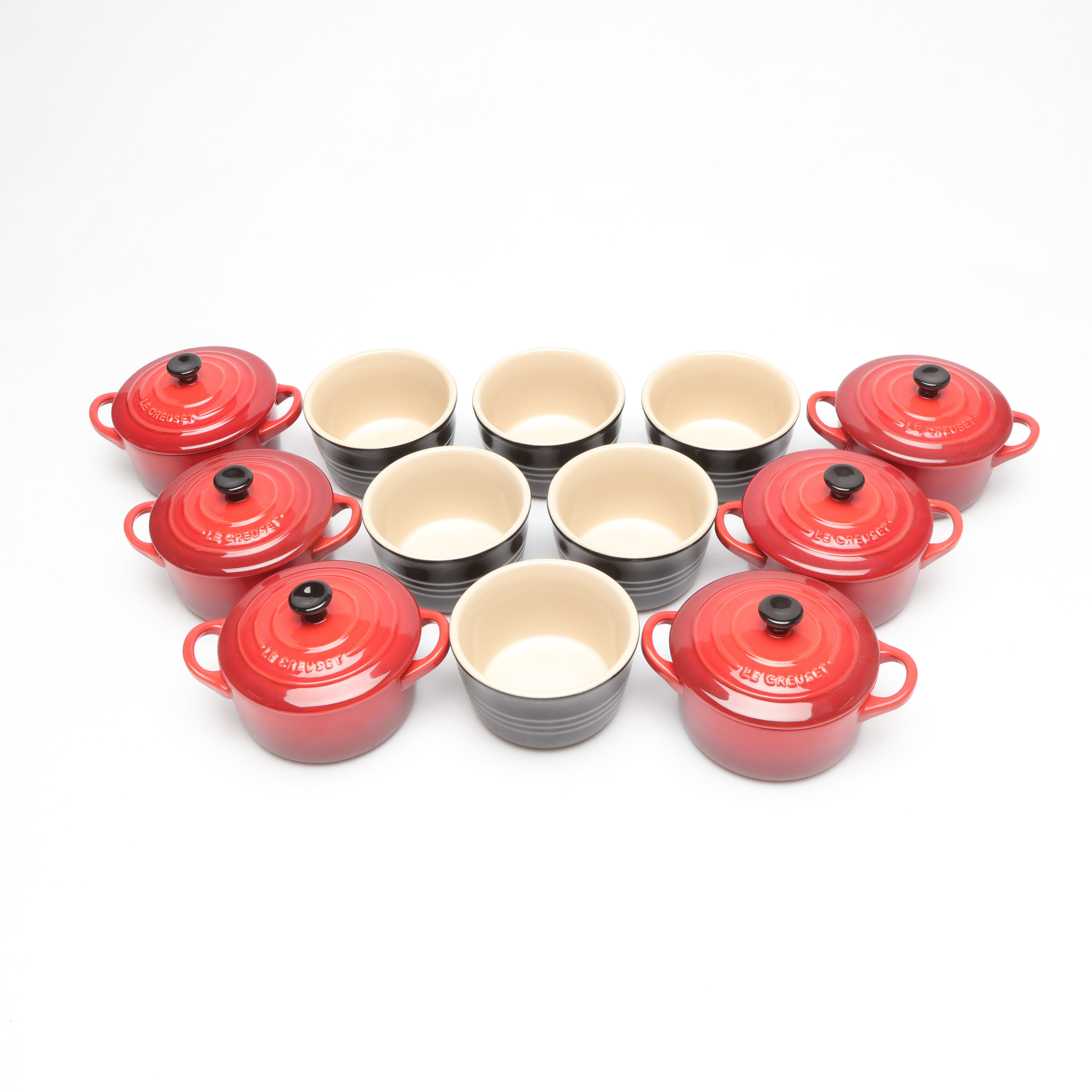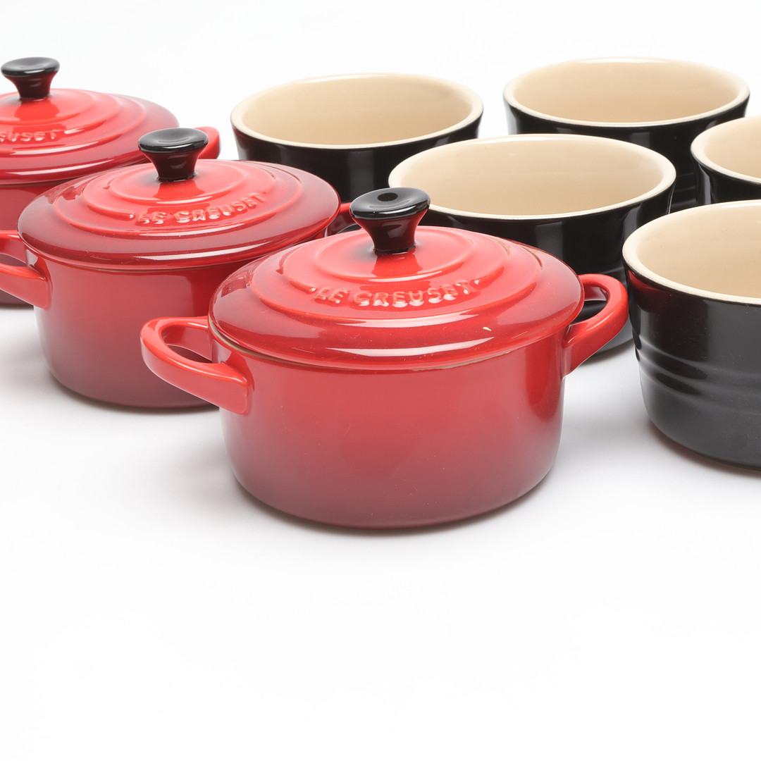 4987888. LE CREUSET. mini pots and pans, 6+6.