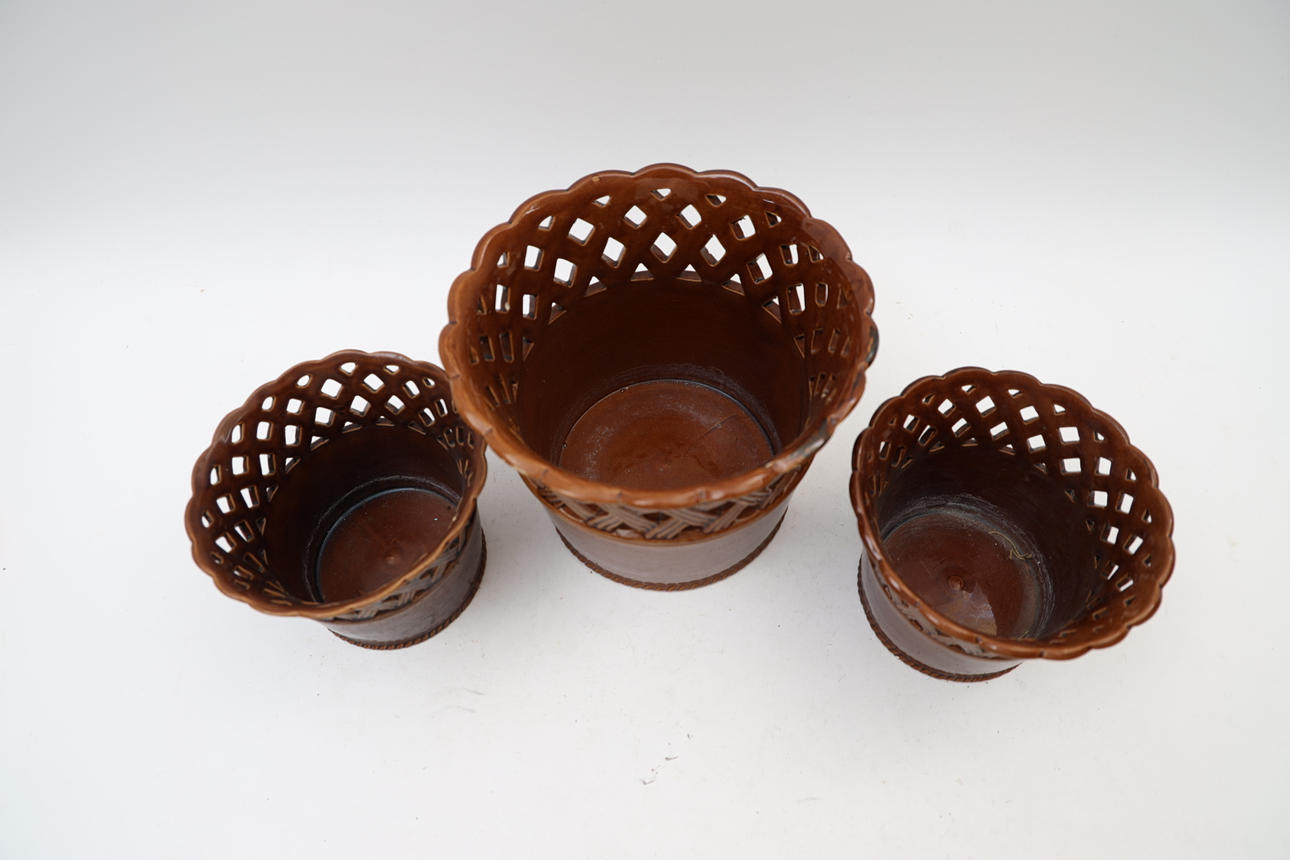 OUTER LINING, 3pcs, brown-glazed with openwork grid edge.