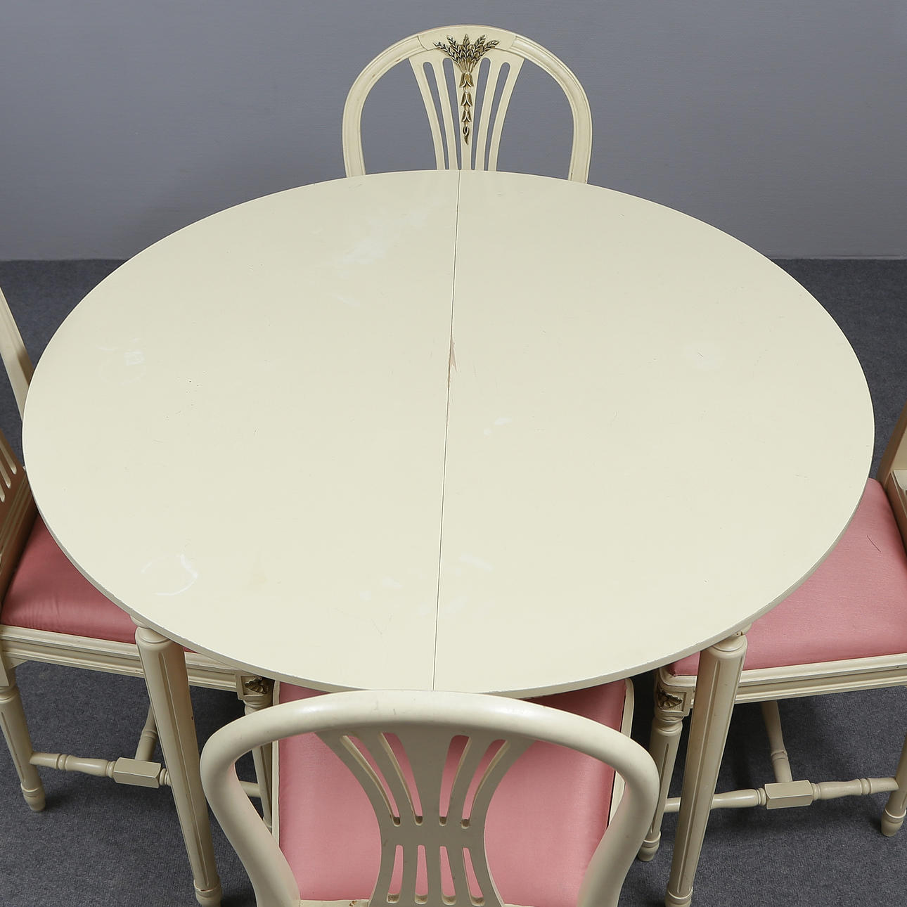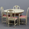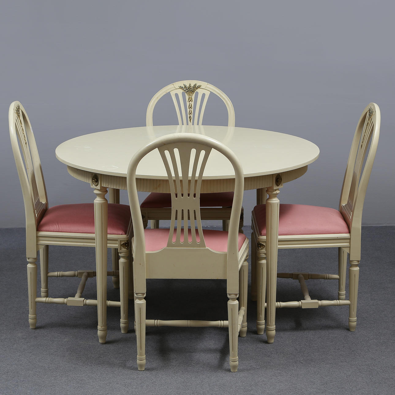 Table height 74, diameter 110 cm Chairs height 92, seat height 46 cm.