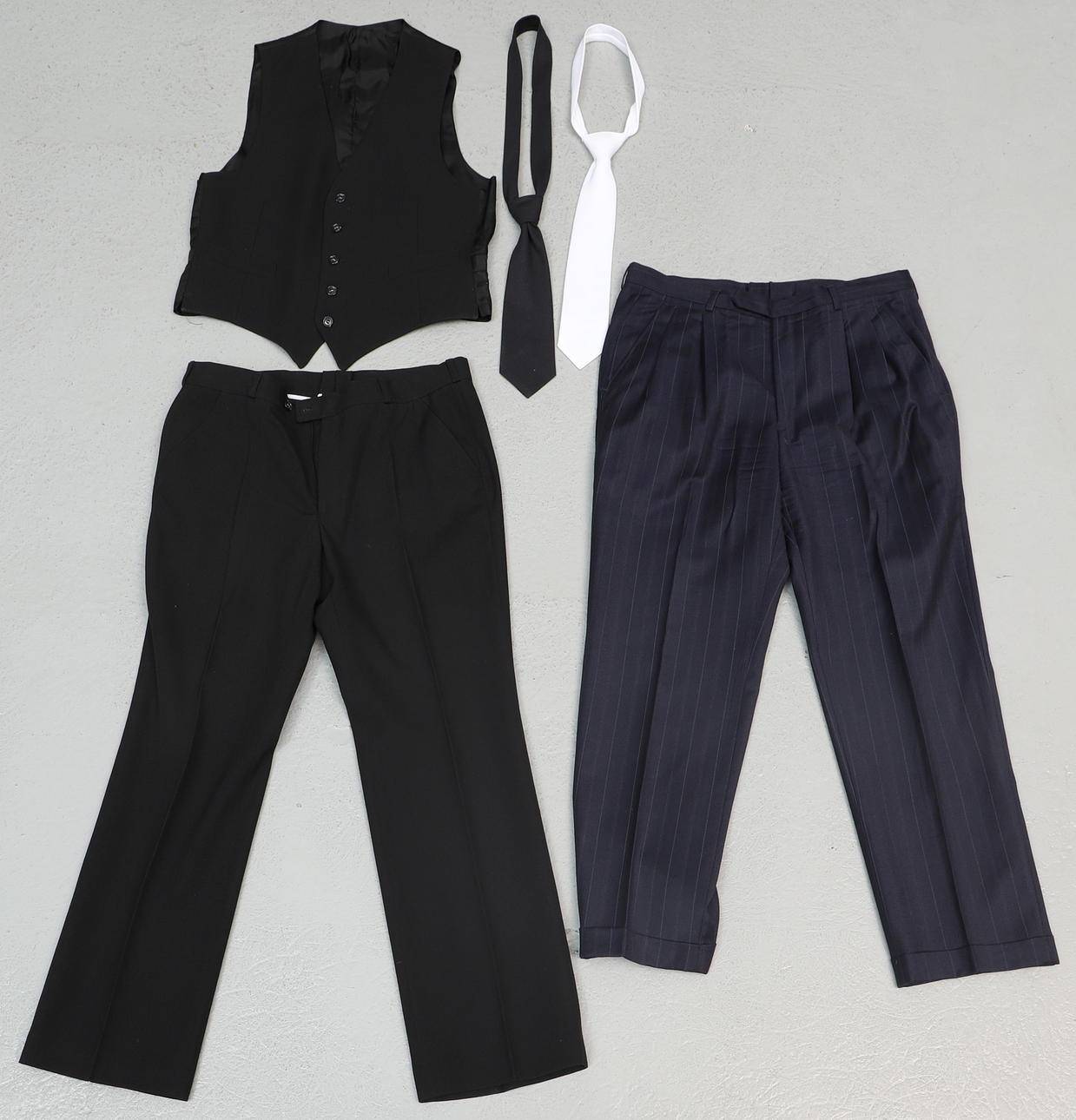 Size D96. Blazer, length approx: 76 cm, bust size approx: 104 cm, inner arm length approx: 42 cm. Pants, length approx: 104 cm, waist circumference approx: 90 cm.