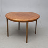 Veneered with walnut. A 44 cm insert plate. Table diameter approx 111, height 73 cm.