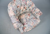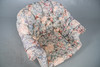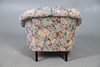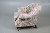 With vibrant floral upholstery raised on turned front supports with casters, W88 x H75 x D86cm, seat H44cm.