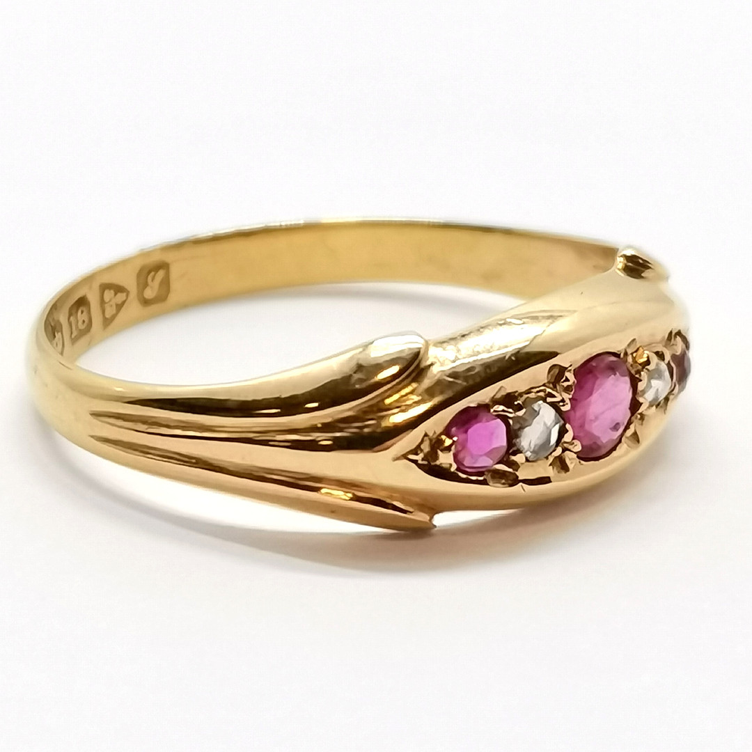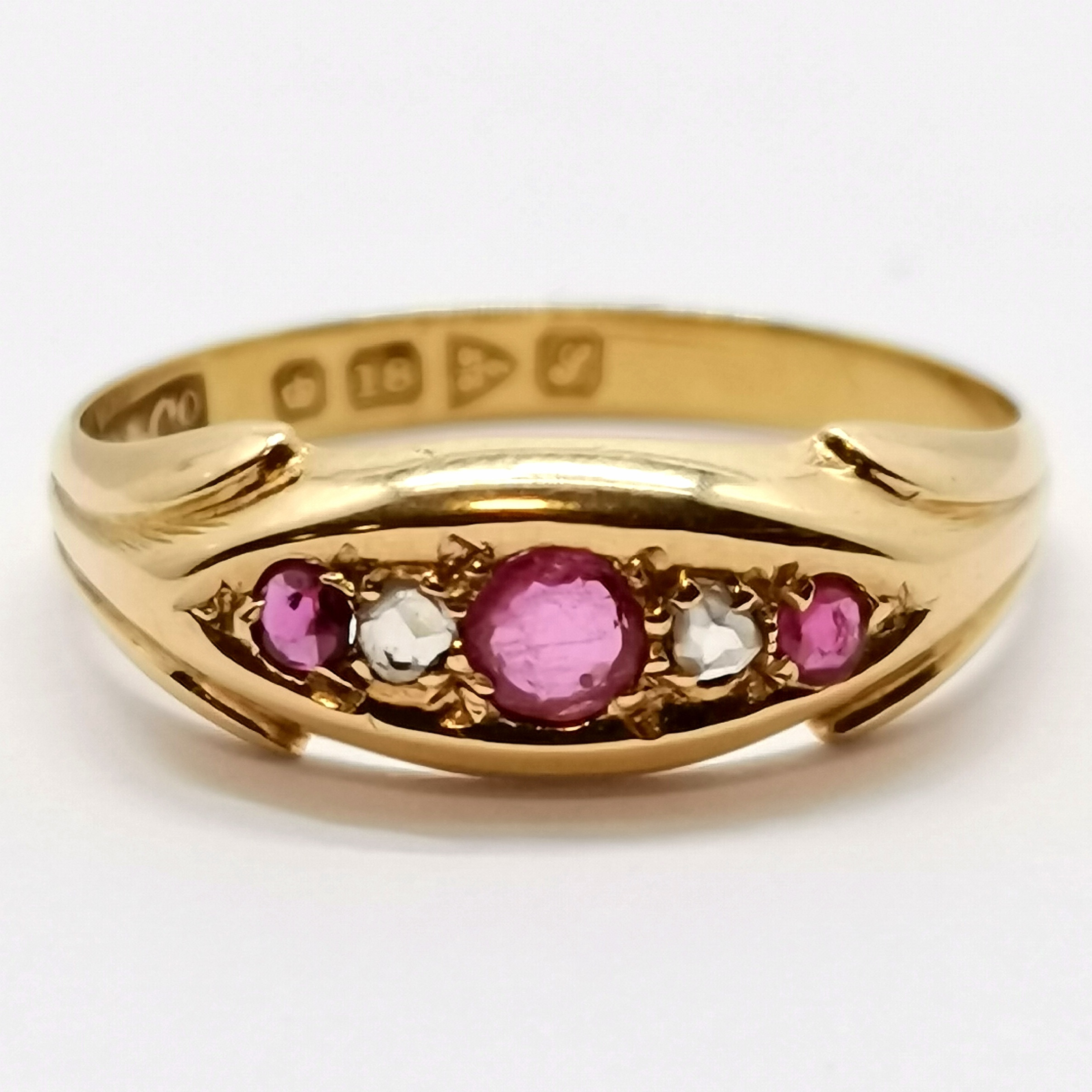 4988526. 1918 ANTIQUE 18ct CHESTER GOLD RUBY & DIAMOND RING.
