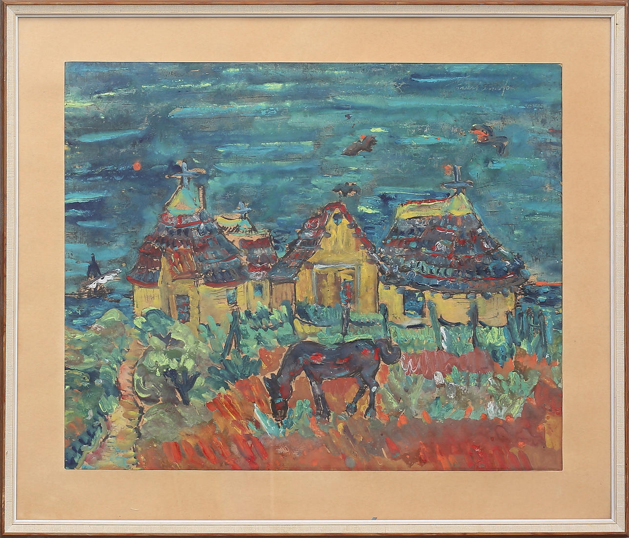 Dimensions within passepartout 45 x 56,5 cm, frame dimensions 59,5 x 71,5 cm.