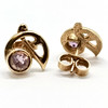 Malcolm Gray (Ortak Silvercraft) 9ct hallmarked gold stud earrings set with amethyst - approx 9.5mm across & 2.1g total weight.