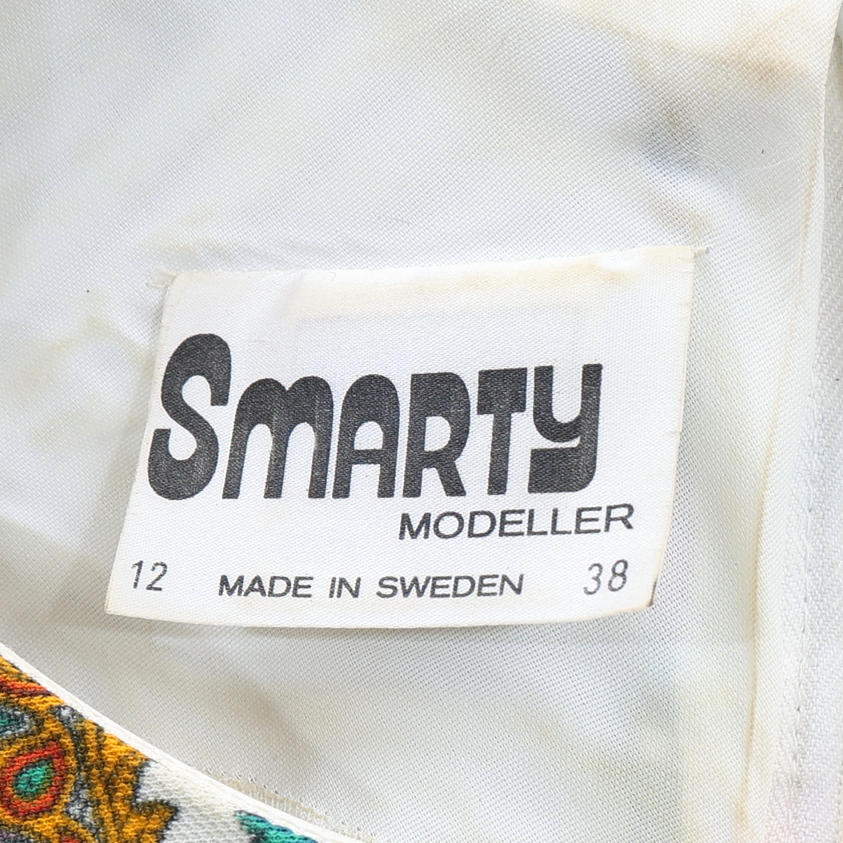 SMARTY models size 38, striped and floral with a knot at the waist. Made in Sweden.