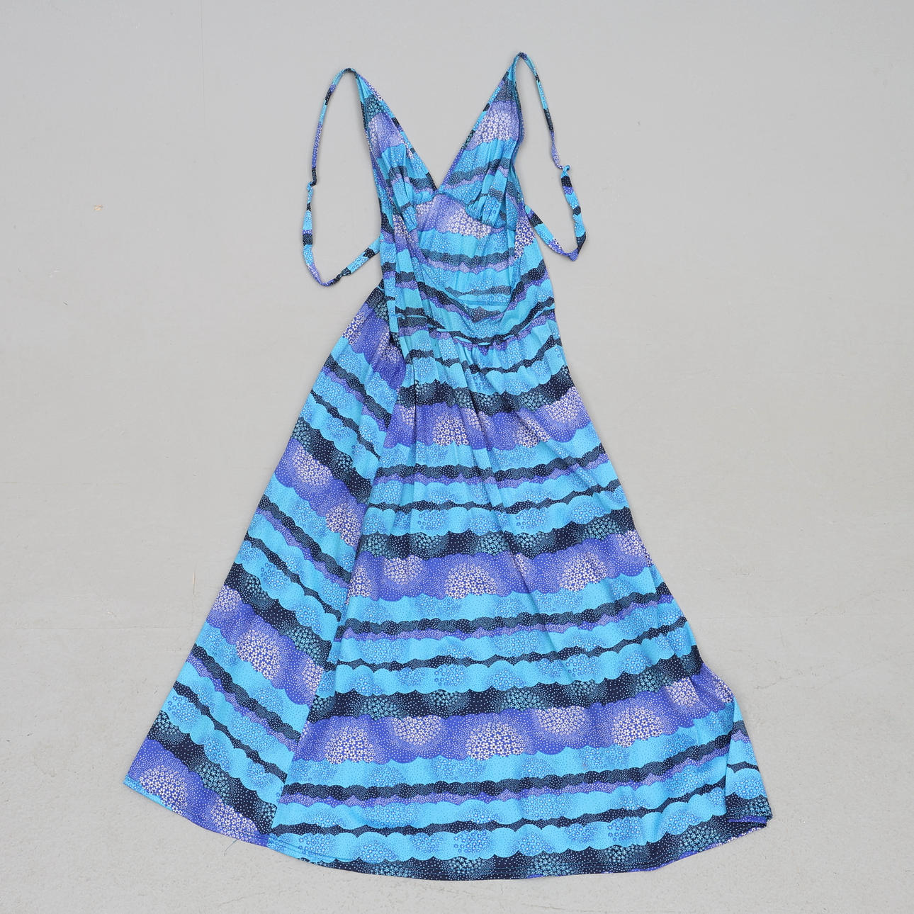 Dress, blue small floral, tied at the neck, back free. Size 40. Made in Austria.