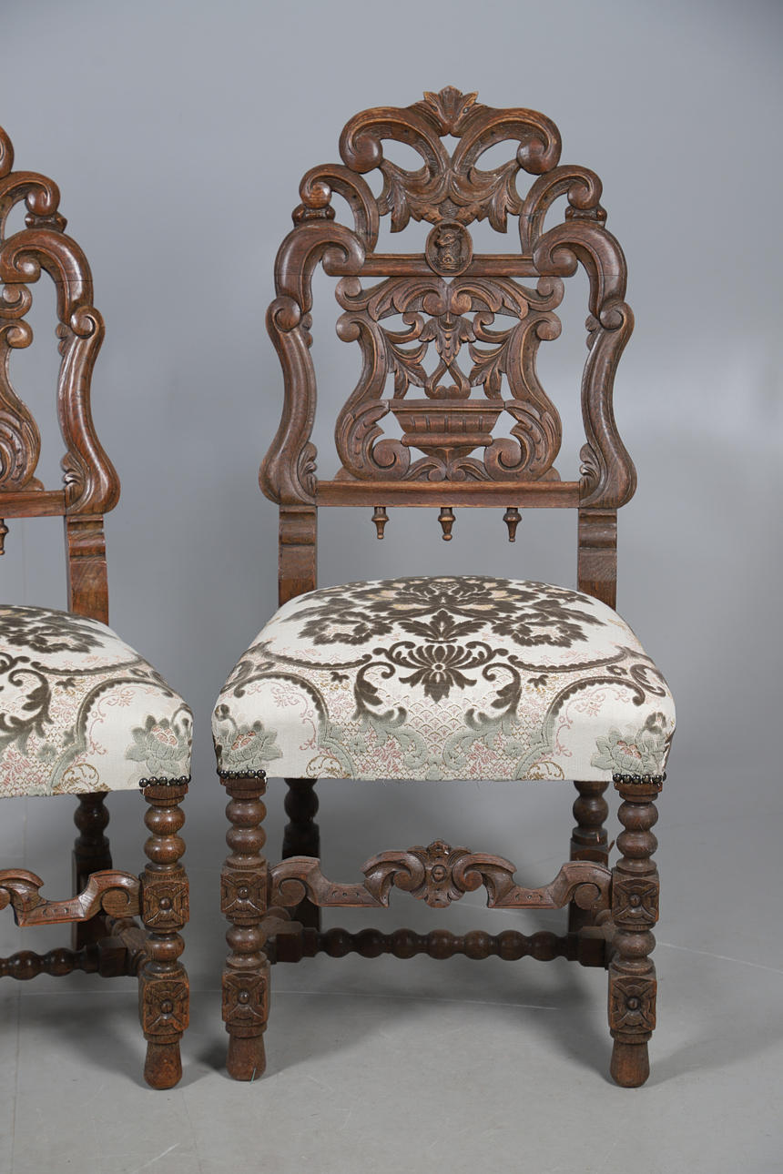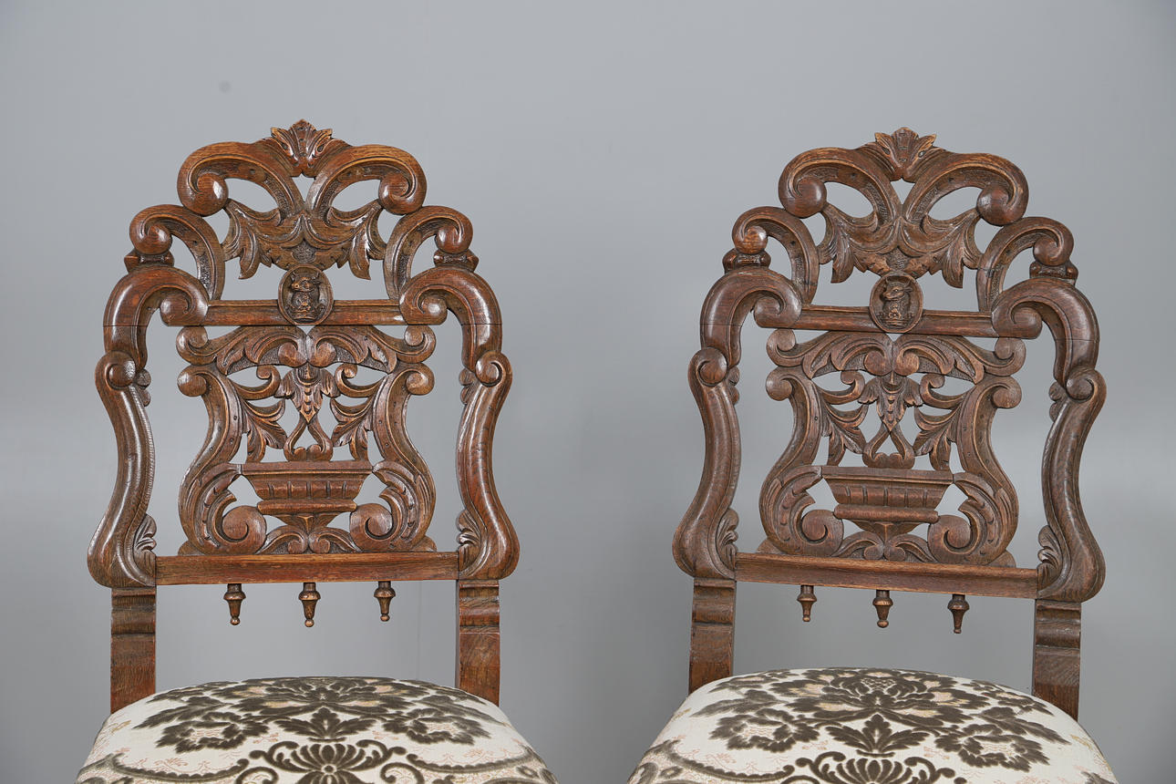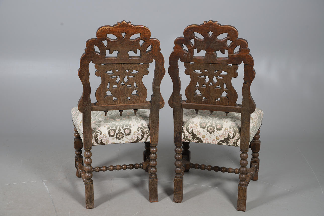 4988677. A PAIR OF CAROLEAN STYLE OAK DINING CHAIRS.