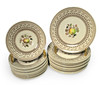 Comprising: coffee pot, milk jug, sugar bowl, 12 place settings and 12 additional dessert plates.