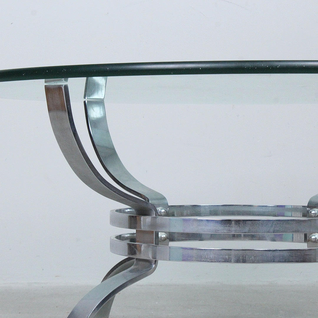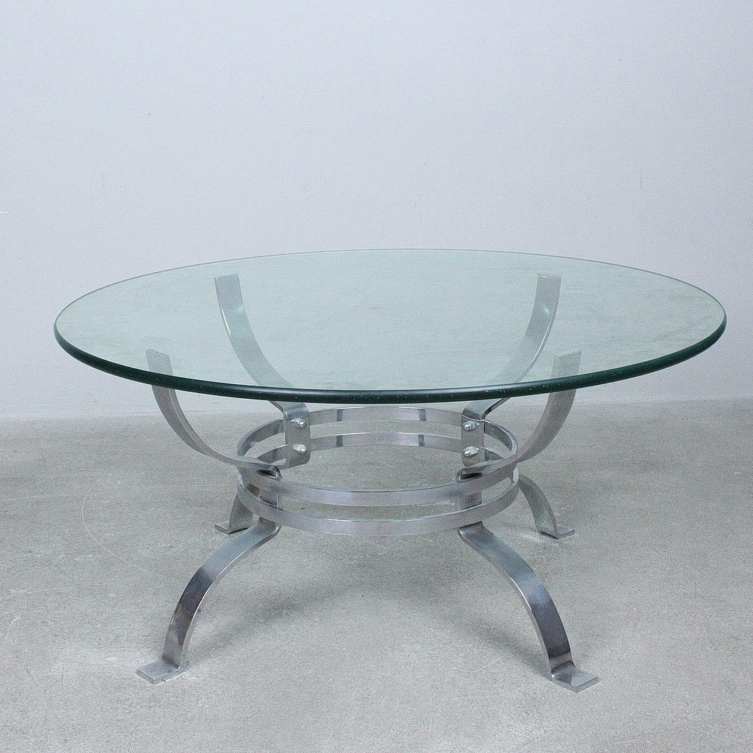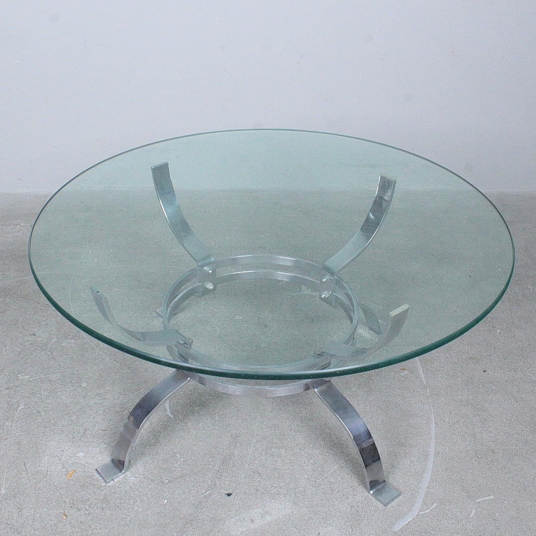 Coffee table/Coffeetable, Italy, 1970s, chrome-plated metal construction, round glass table top, Dimensions approx.: h. 52.5 cm, diameter 109 cm.