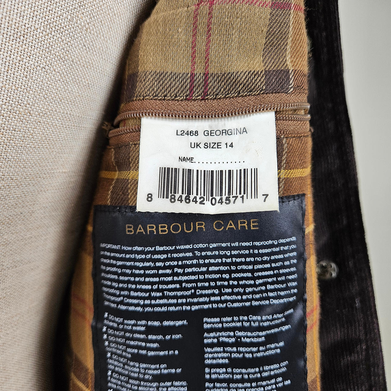 4988715. JACKET, Barbour, England.