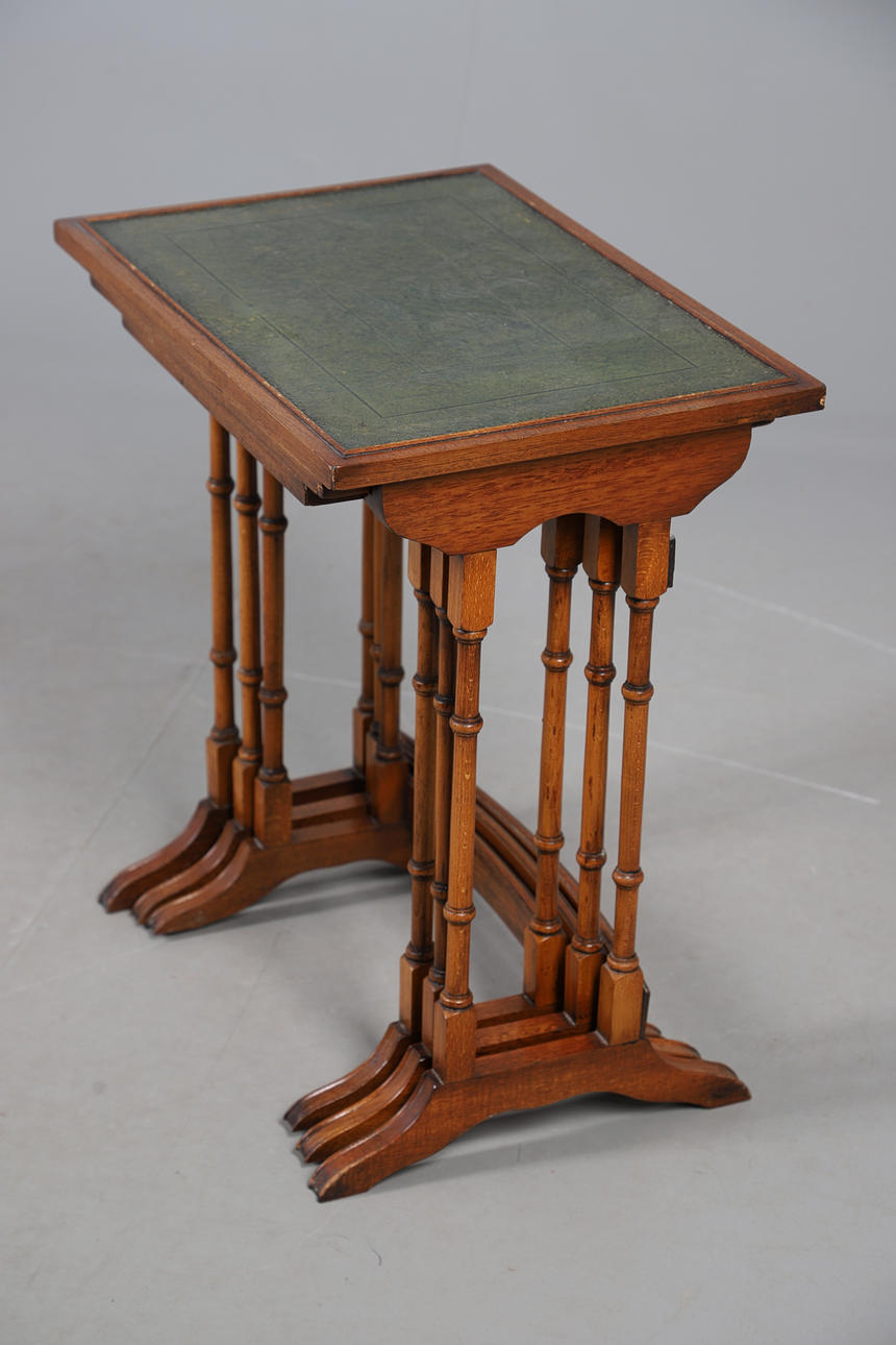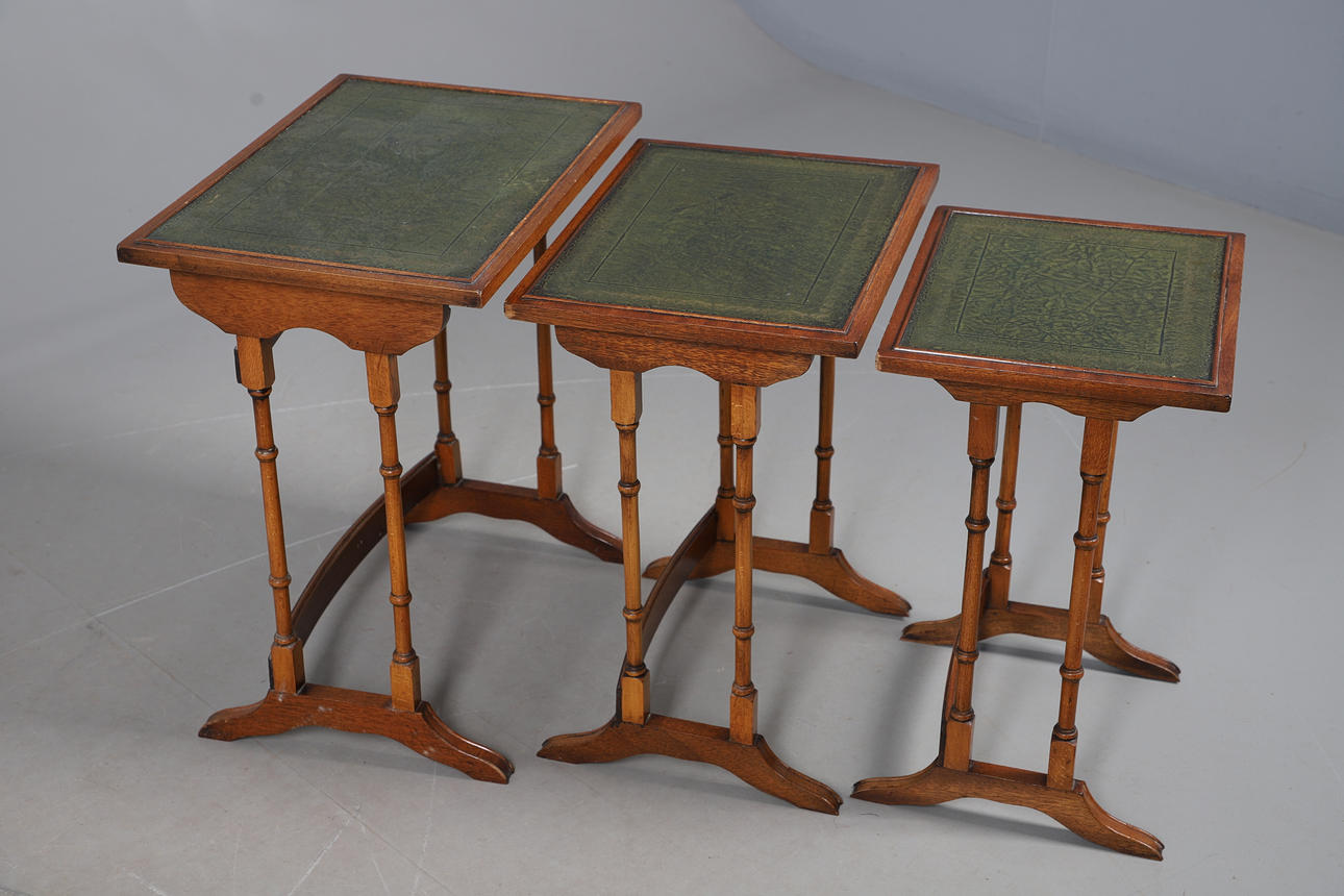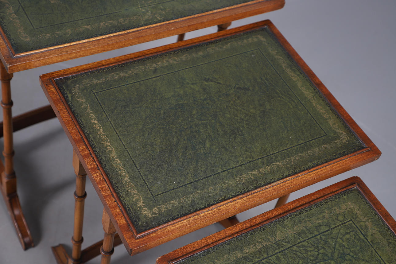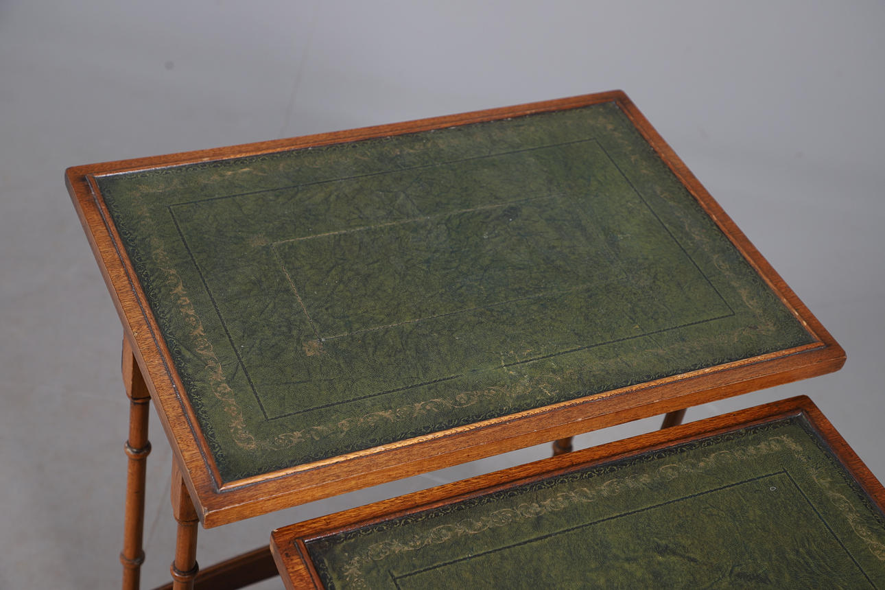 4988768. EDWARDIAN LEATHER-TOPPED MAHOGANY NESTING TABLES.