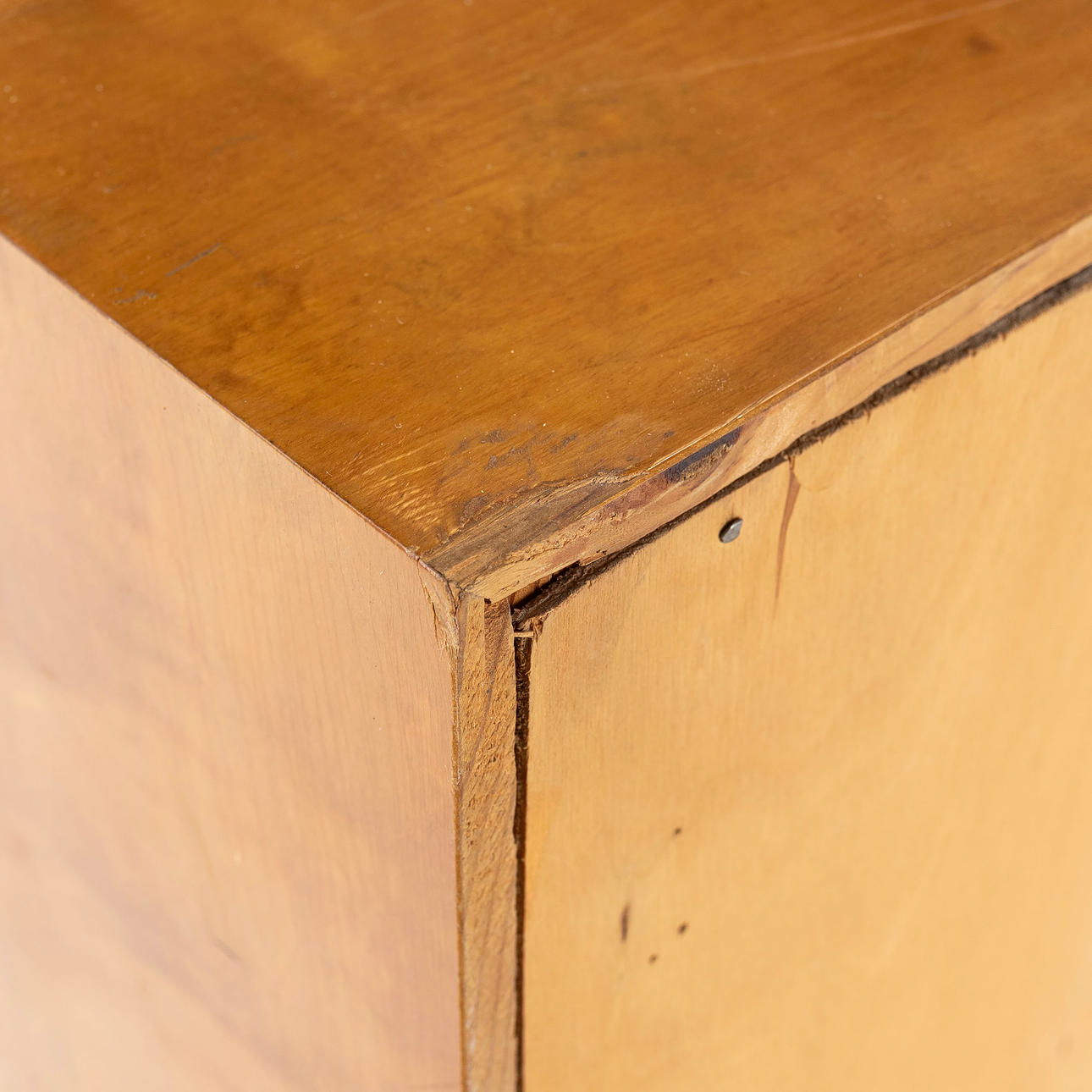 Veneer damage in a corner.