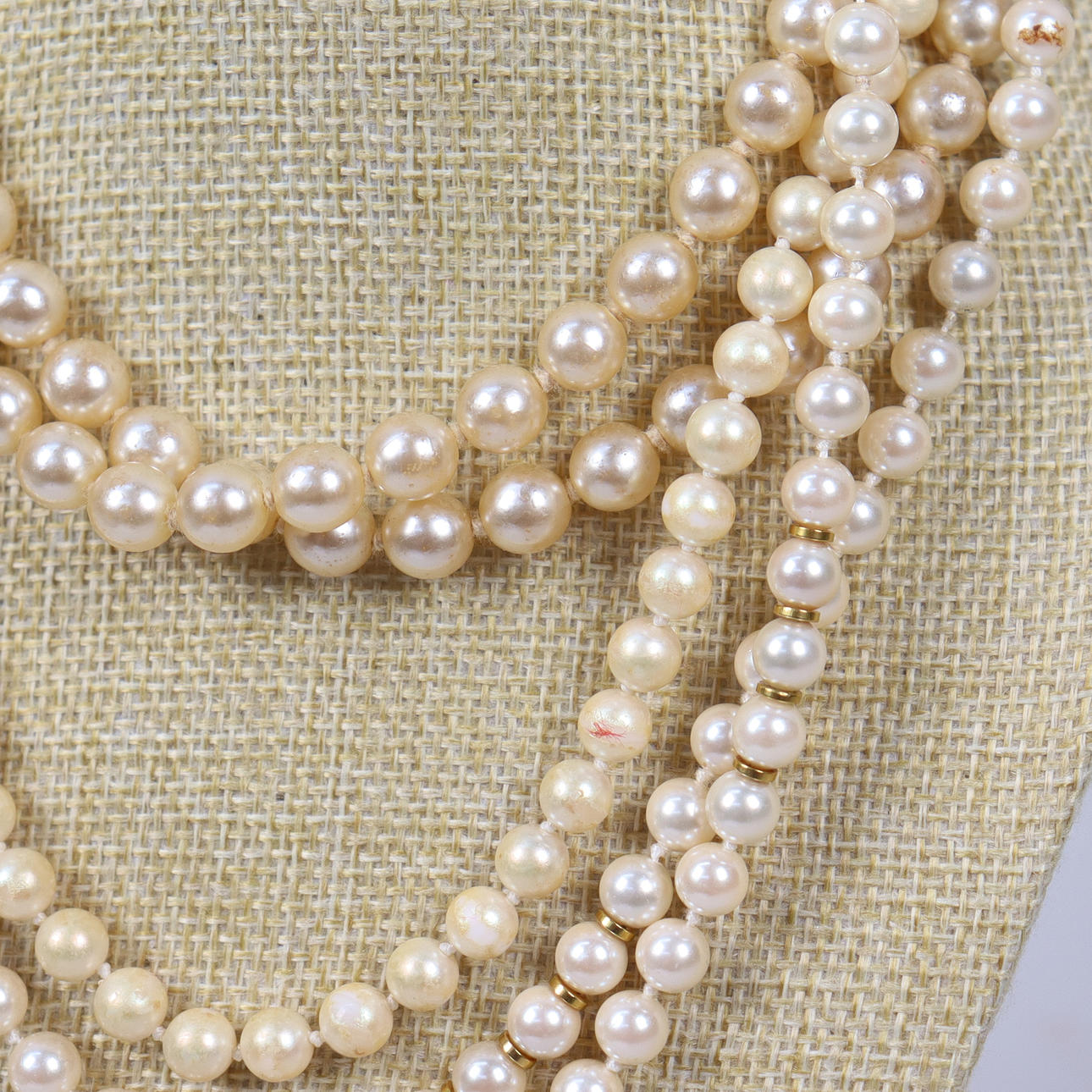 Usage and age-related wear. The short necklace has wear and is plastic.