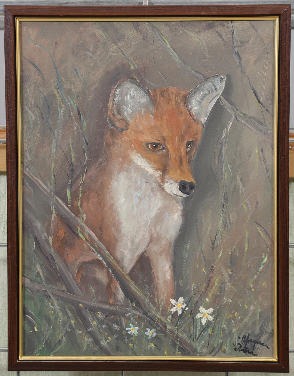 “Yngve Fox”. Dimensions panel 45,5x34,5 cm, dimensions with frame 48,5x37,5 cm. Also signed with “Fox” which is unusual.