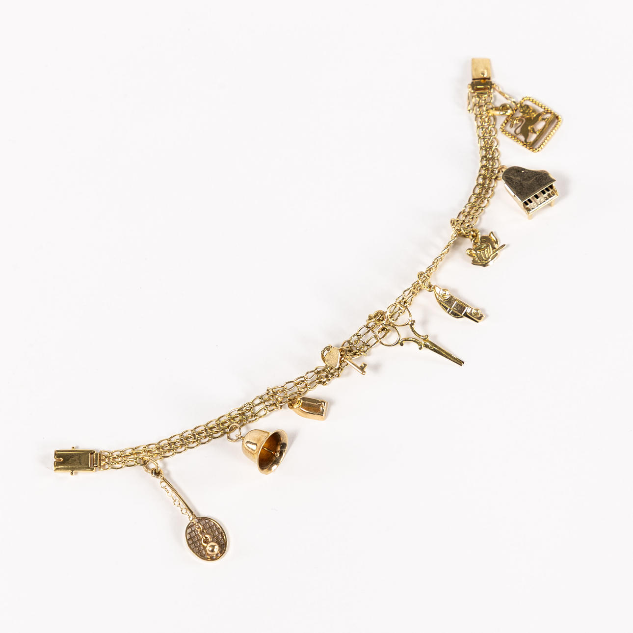 Bracelet, with charms, 18k gold, weight 13,6 grams