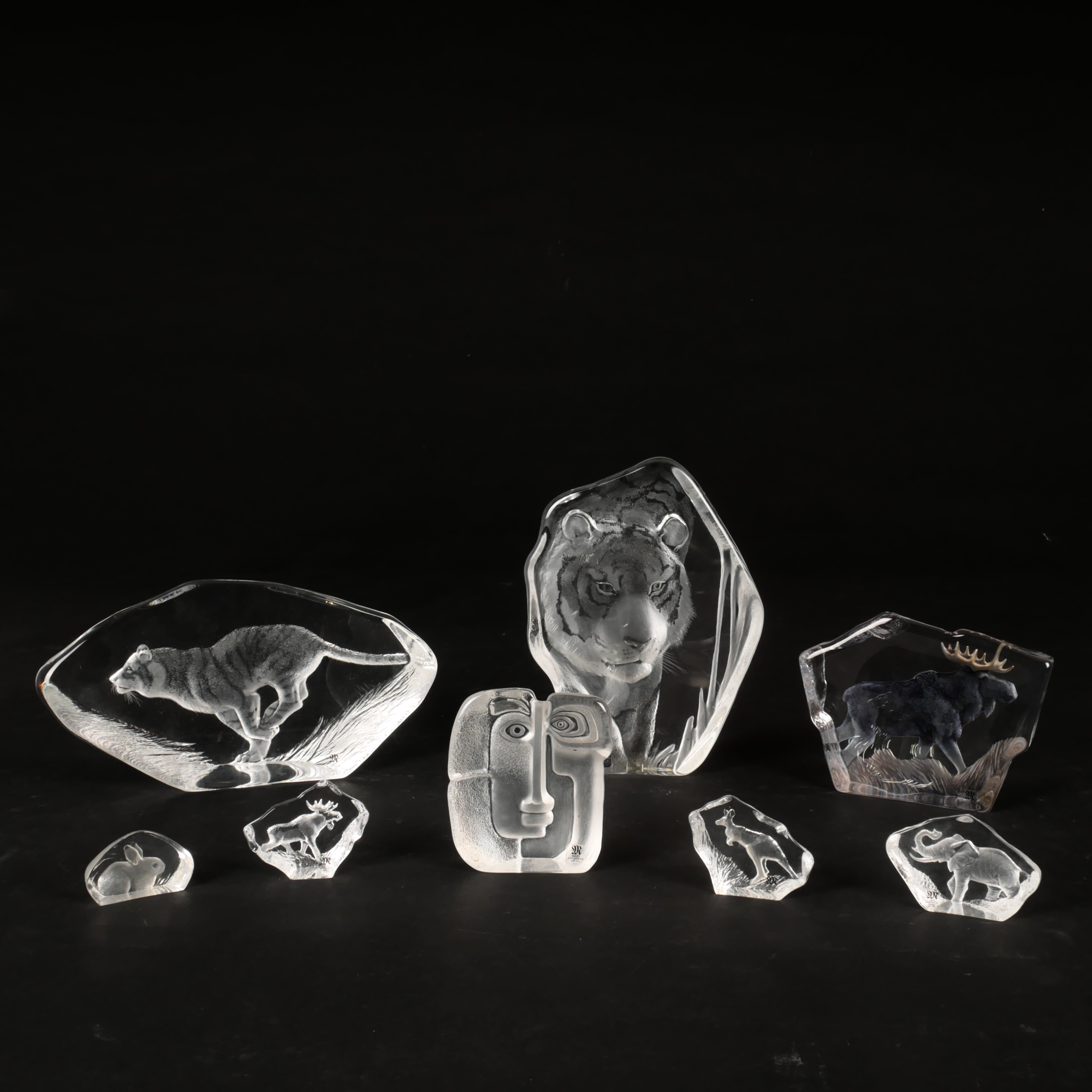 4989246. MATS JONASSON. Glass blocks, 8 pcs, Painted lock, signed.