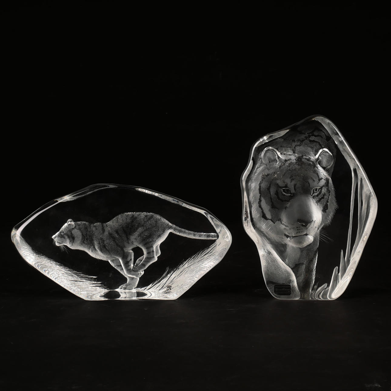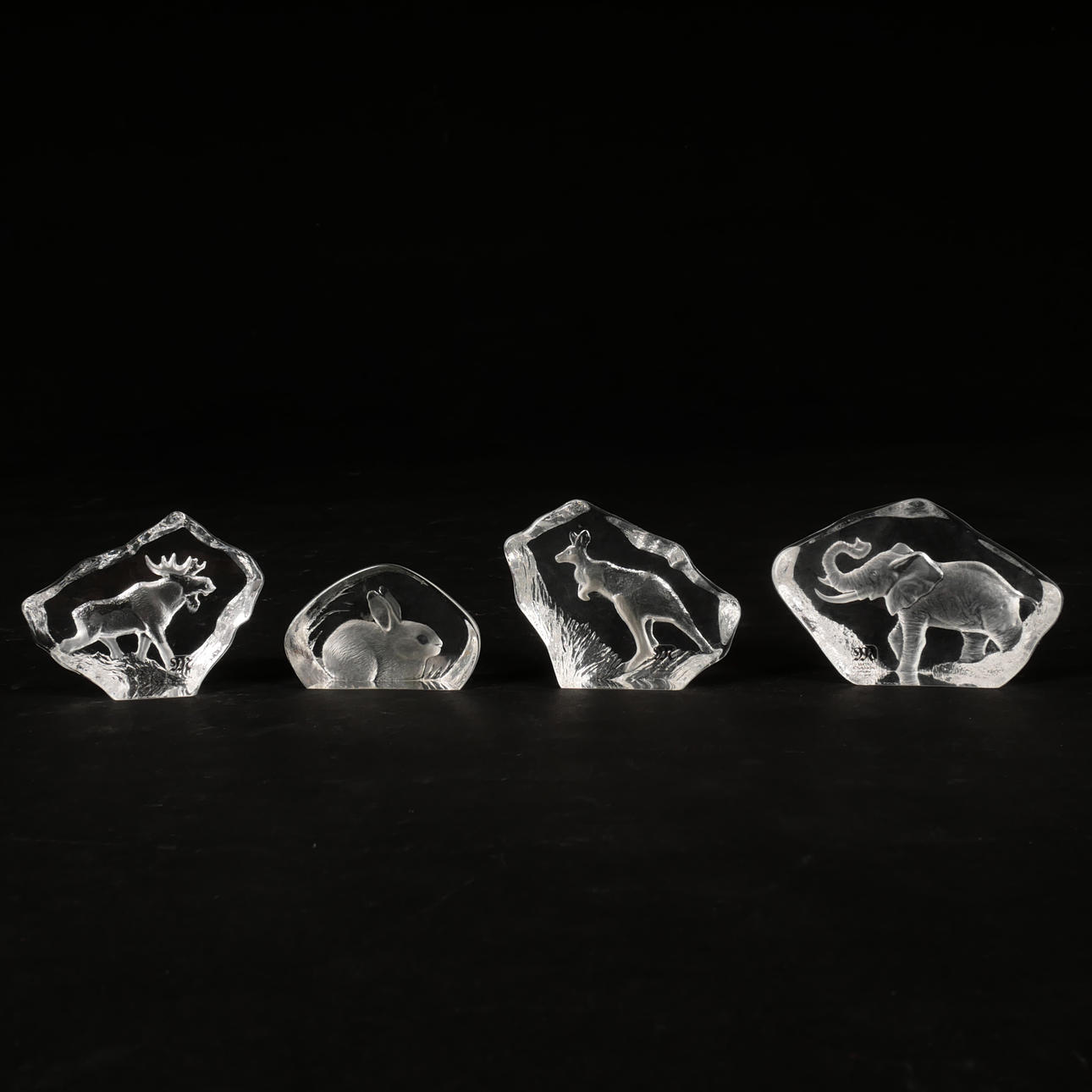 MATS JONASSON. Glass blocks, 8 pcs, Painted lock, signed.