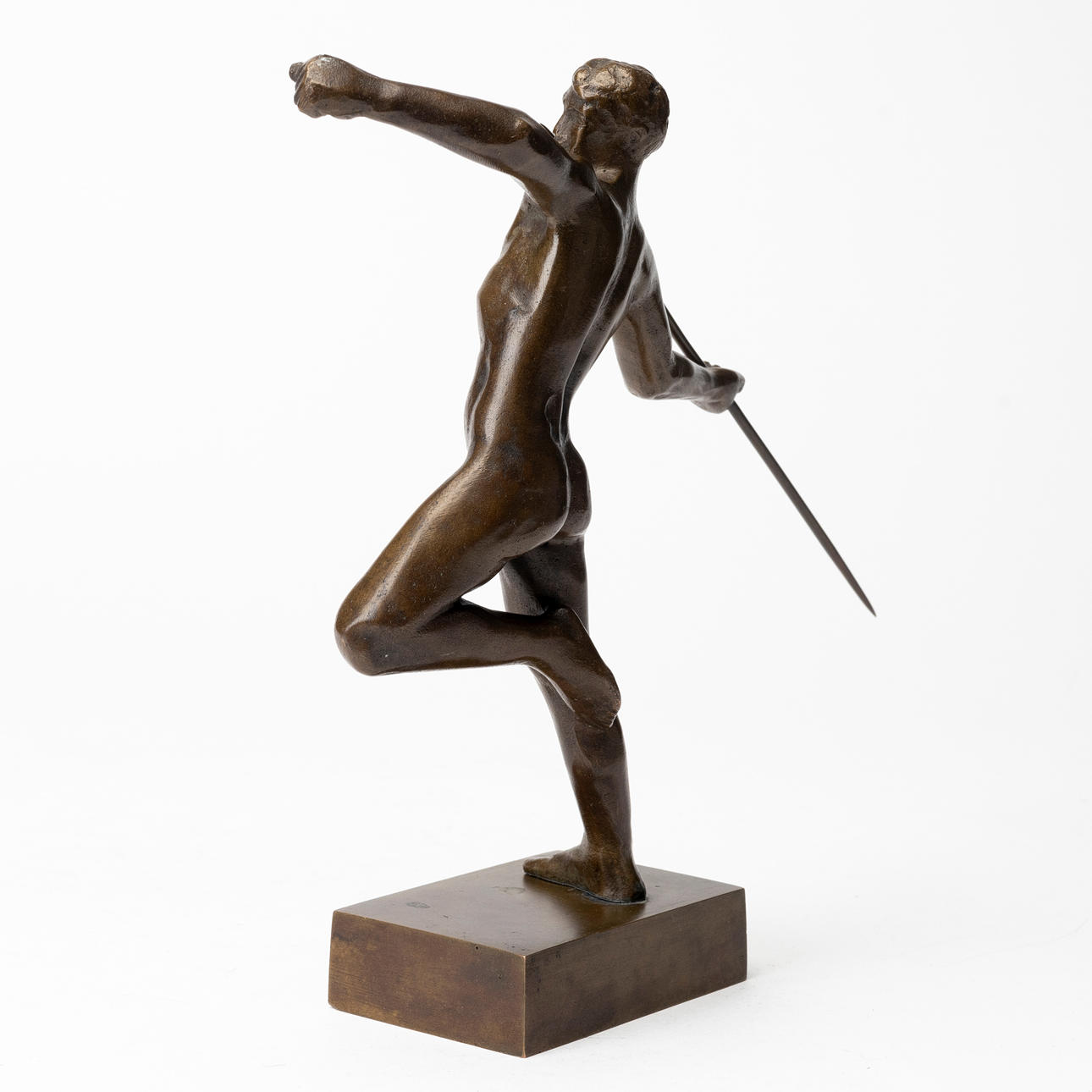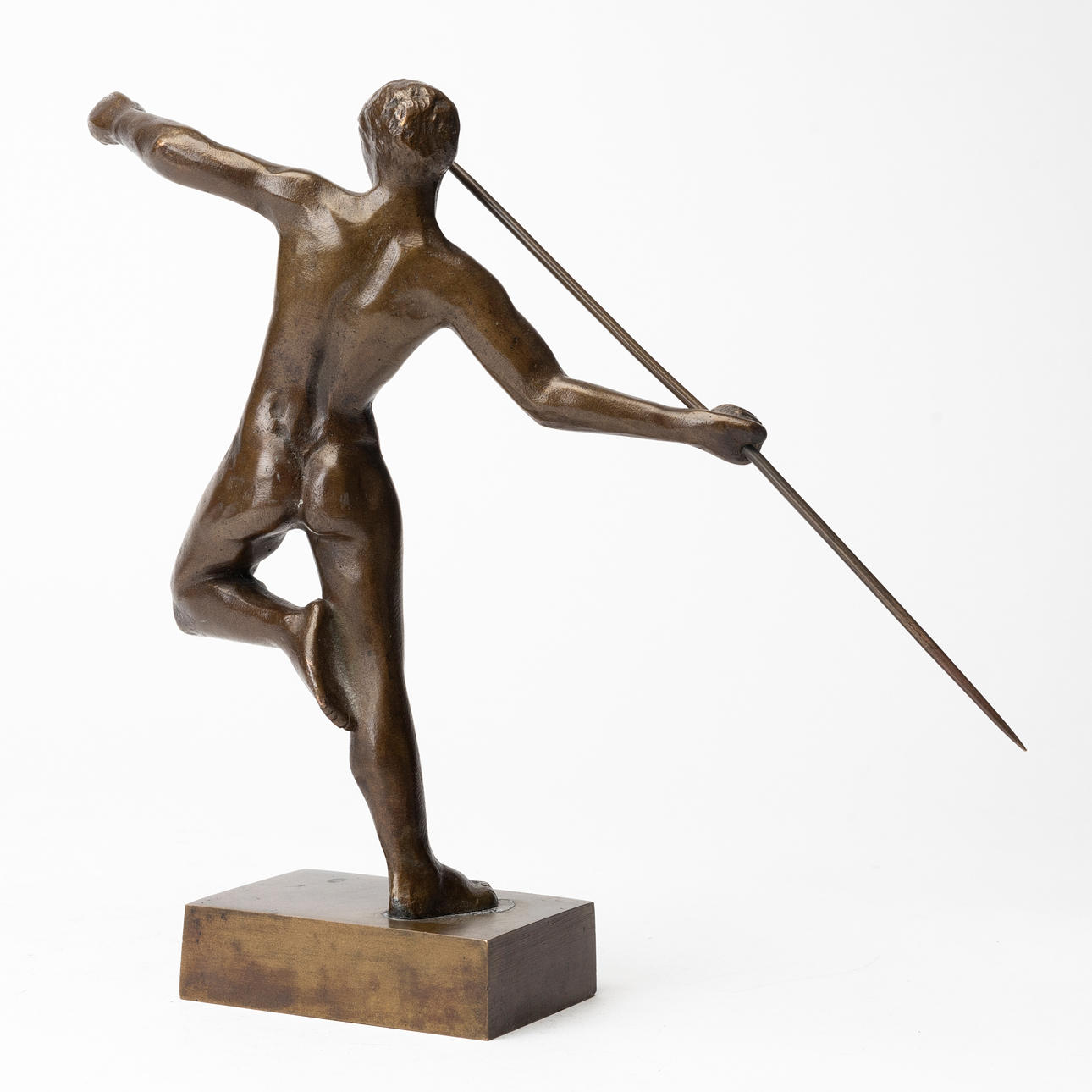 4989597. CARL EINAR BORGSTRÖM (1914-1981). A bronze spear thrower, monogram signed, Ystad Bronze, mid 20th century.